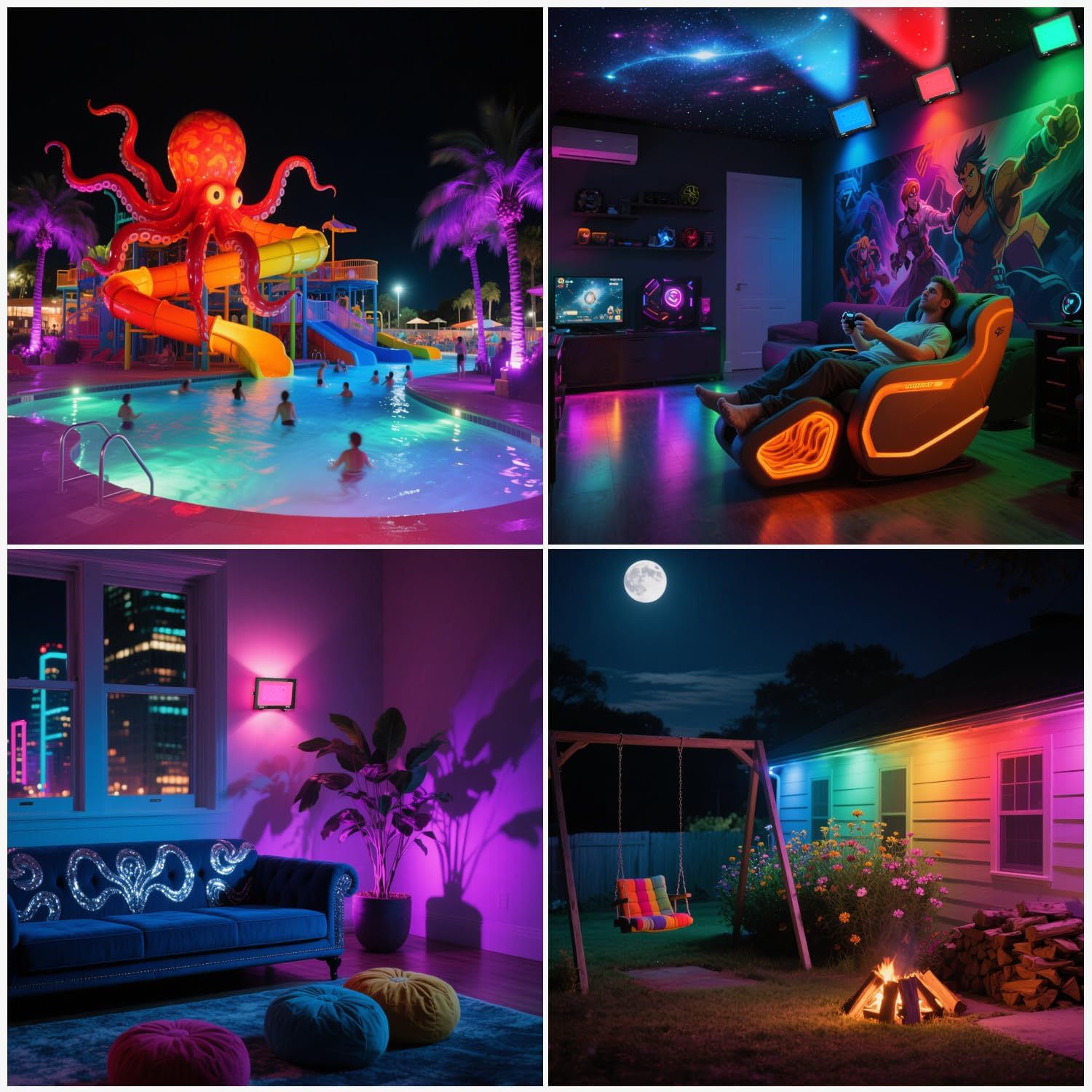 • DIMMABLE DIY COLORS & MODES: 30W RGB Flood Lights with multi colors and modes. Just pick up your favorite color, brightness