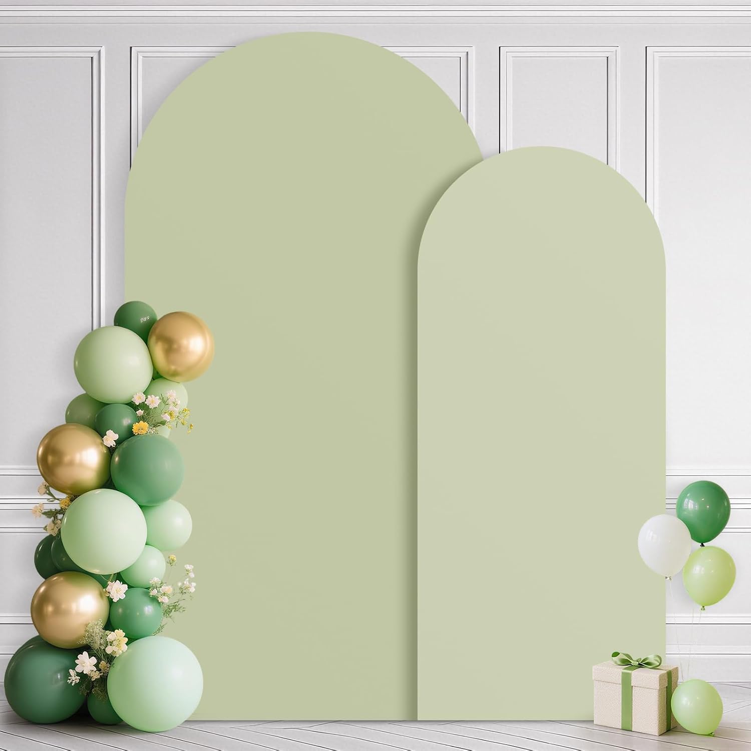 • 【Arch Covers Package】2 Piece Arch Cover (Arch stand not included), color: Sage Green. We have arch backdrop covers of different sizes --- size: 7.2 feet x 4 feet (H x W) / 6 feet x 2.7 feet (H x W). Please measure the size of the arch in your home before purchasing and choose the appropriate backdrop cover. If you have any questions, please feel free to contact us at any time.
