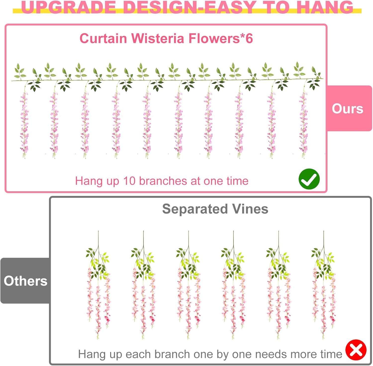 • Material:The artificial wisteria flowers are made of silk and have a silk-like touch. And these hanging flowers have plastic stems and metal wires, can be bent at will, you can bend according to your own needs to get the decoration you want.