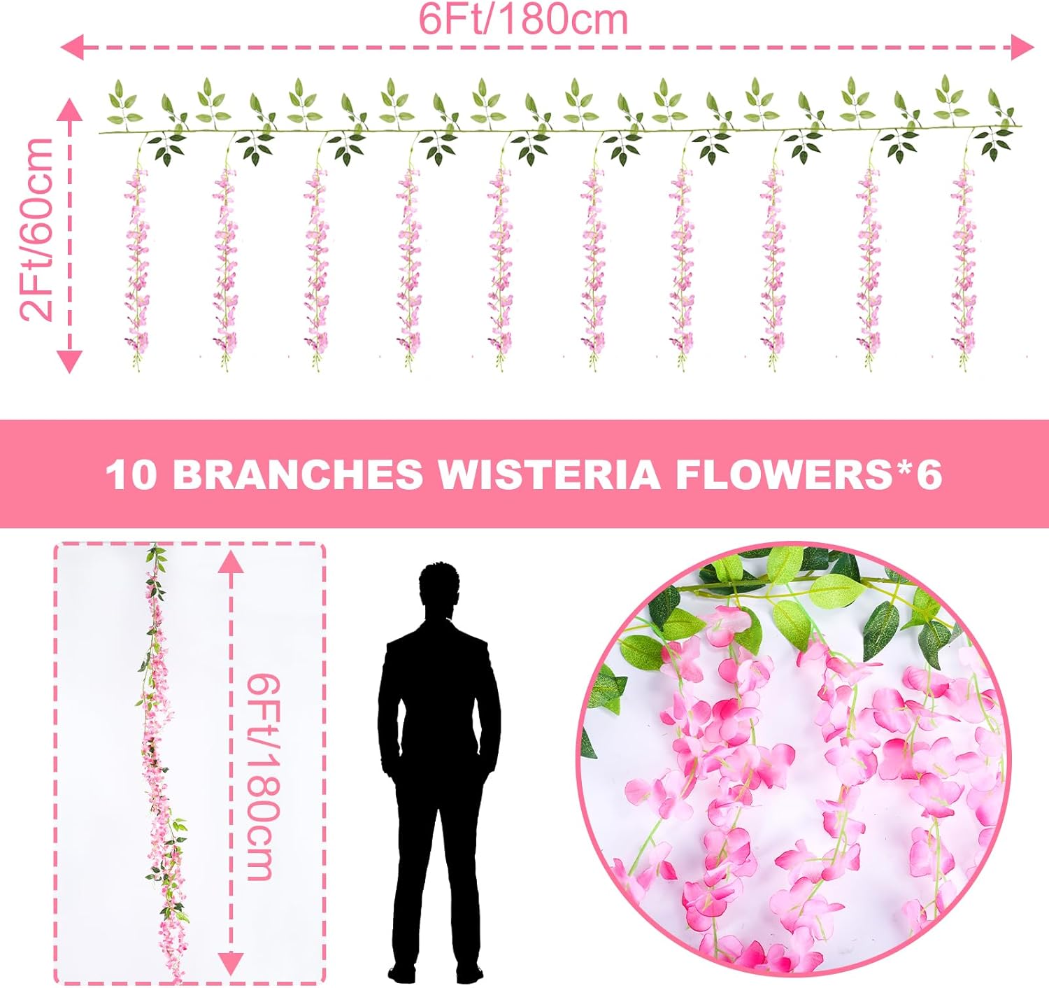 Wisteria Artificial Flowers Garland,10Pcs Total 60ft Silk Fake White Wisteria Flowers Hanging for Home Garden Wedding Arch Party Indoor Outdoor Decor(10,Pink)