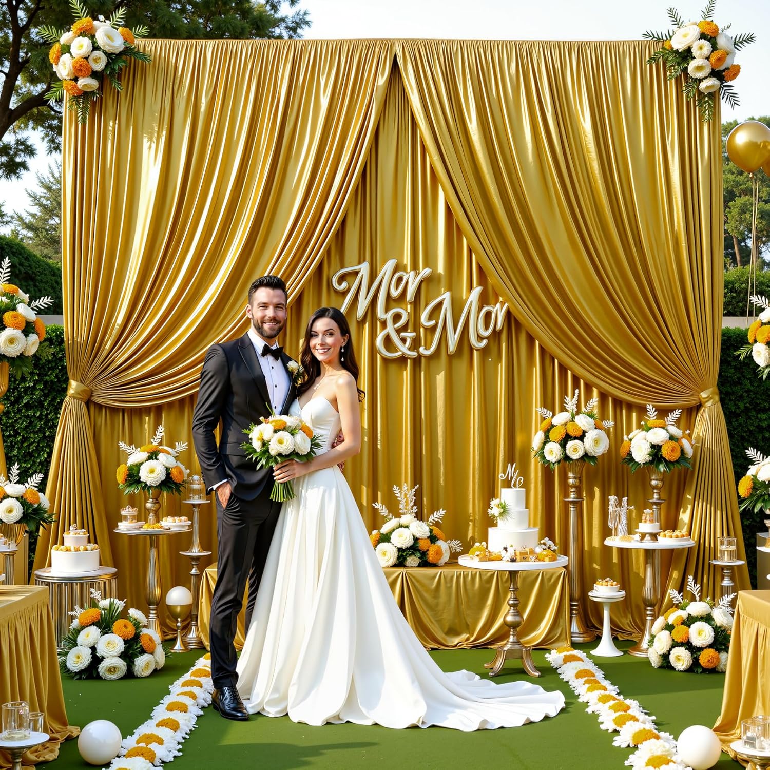 • Gold Shimmer Drapes for Backdrop Package Included & Easy to install:The package included 2 Panels 5x10ft backdrop curtain,which can be arranged side by side to create a 10x10ft backdrop or used separately.Install way: Insert a rod or hang it on walls, ceilings, or temporary frames.