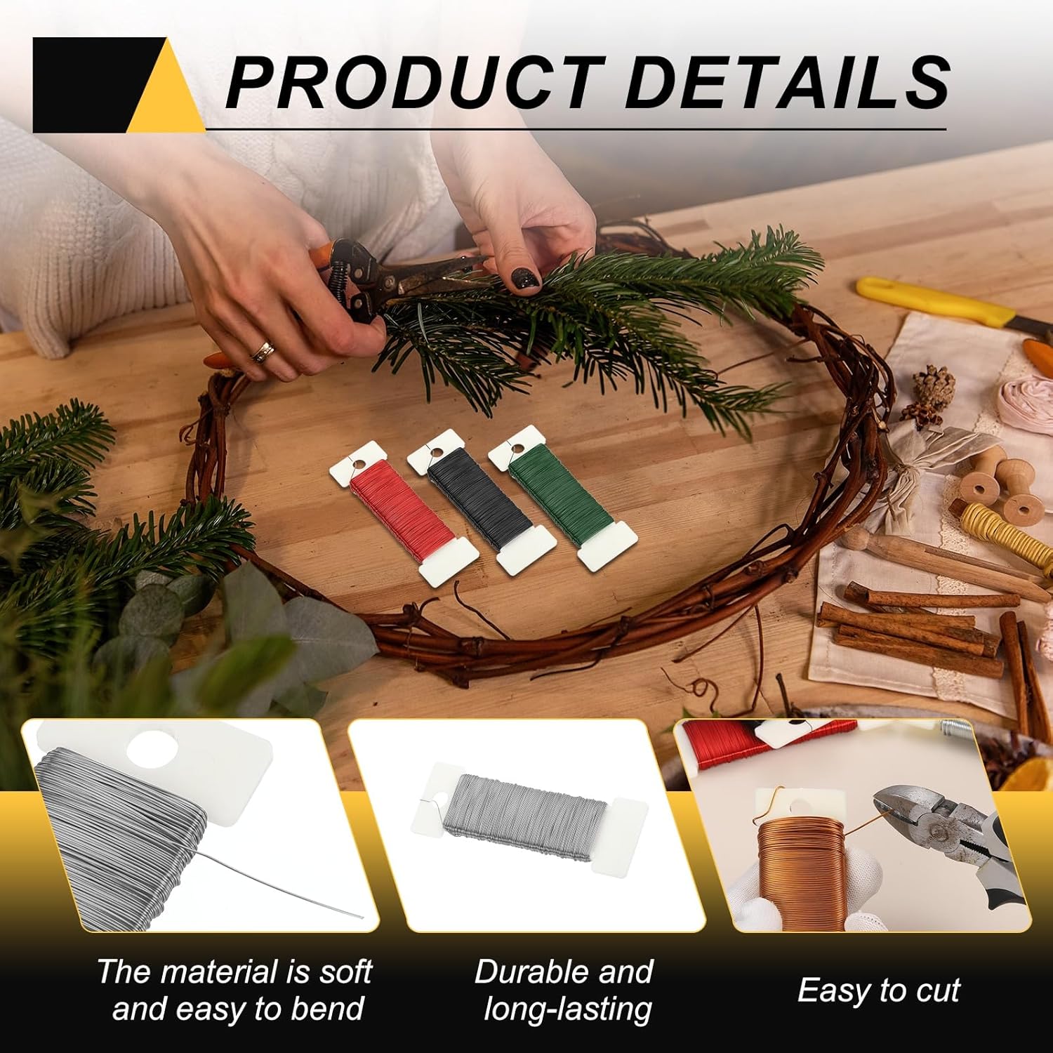 • This floral wire is suitable for various holiday decorations, such as making Christmas wreaths, hanging Christmas ornaments, and tying bouquets to help you secure the position of fresh flowers and prevent them from scattering. It can also be used to create exquisite potted plant art, bows, crafts, and more.