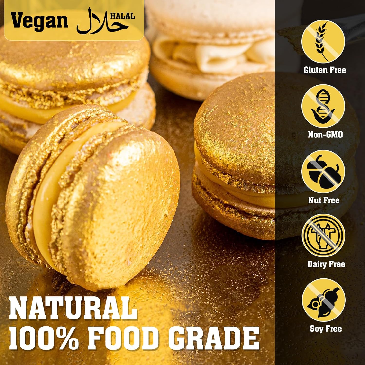 • 【Easy to Use & Versatile】: The edible glitter can simply apply dry with a brush, or mix with alcohol, lemon extract or oil-based flavorings for spray or brush application, or even mix into beverages. These edible luster dust is perfect for decorating frosting, fondant, whipped cream, cocktails, mocktails, champagne, and chocolates with a stunning gold shimmer effect.