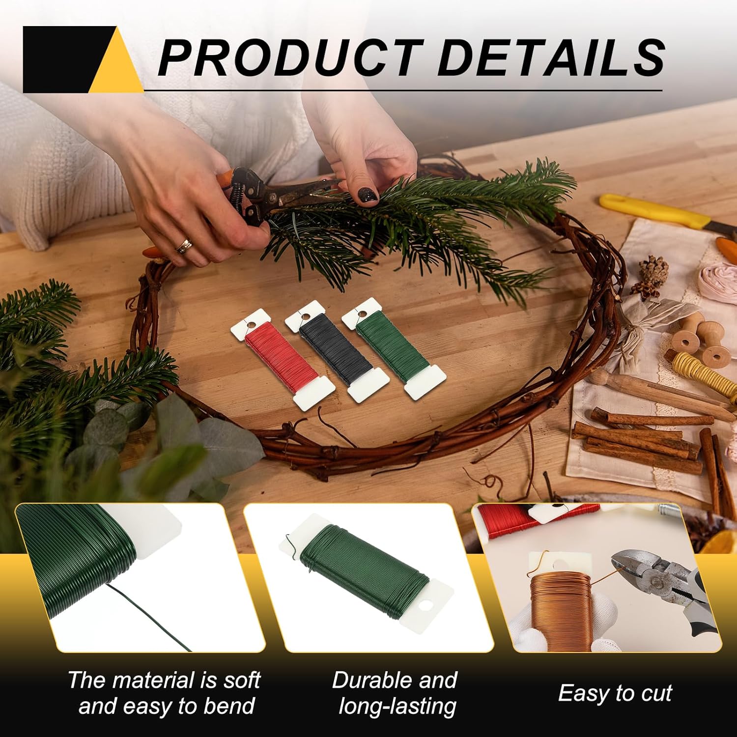 • This floral wire is suitable for various holiday decorations, such as making Christmas wreaths, hanging Christmas ornaments, and tying bouquets to help you secure the position of fresh flowers and prevent them from scattering. It can also be used to create exquisite potted plant art, bows, crafts, and more.