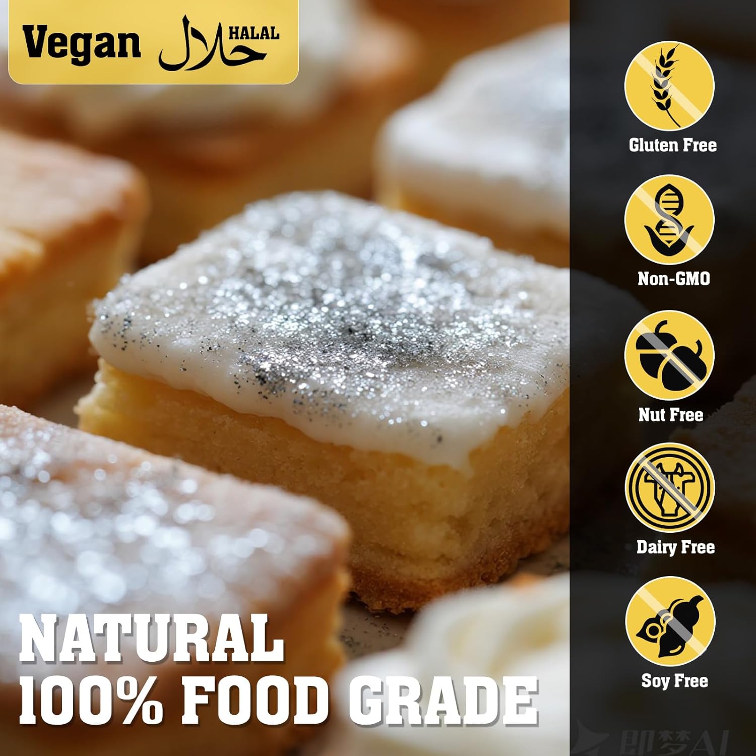 • 【Vibrant Colors & Party Favorite】: Our silver edible glitter delivers a dazzling metallic or pearl finish that instantly elevates desserts and beverages—from wedding cakes to lattes and holiday treats! Ultra-fine powder blends smoothly for a pro-level shimmer without clumping, perfect for bakers styling glitter cupcakes, Starbucks-inspired drinks, cocktail rimming, or DIY desserts.