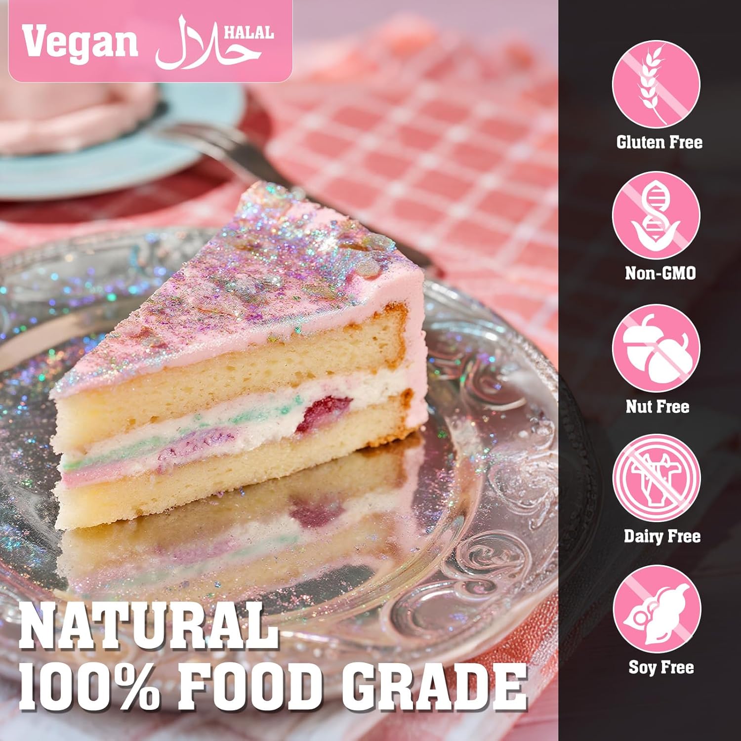 • 【Vibrant Colors & Party Favorite】: Our iridescent edible glitter delivers a dazzling metallic or pearl finish that instantly elevates desserts and beverages—from wedding cakes to lattes and holiday treats! Ultra-fine powder blends smoothly for a pro-level shimmer without clumping, perfect for bakers styling glitter cupcakes, Starbucks-inspired drinks, cocktail rimming, or DIY desserts.