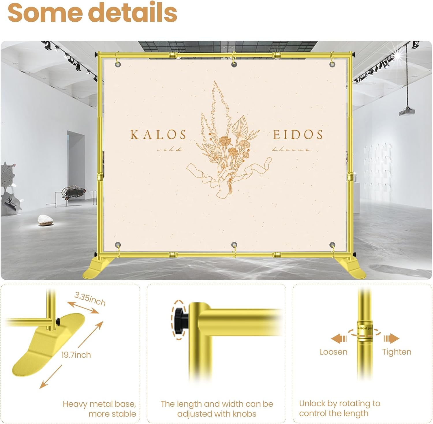 • 【Adjustable Frame】: The telescopic banner stand is suitable for multiple size, They are all telescopic and can be infinitely adjusted to match the size you need, Height adjustable (Min 3.4ft - Max 10ft), width adjustable (Min 6.2ft - Max 10ft).