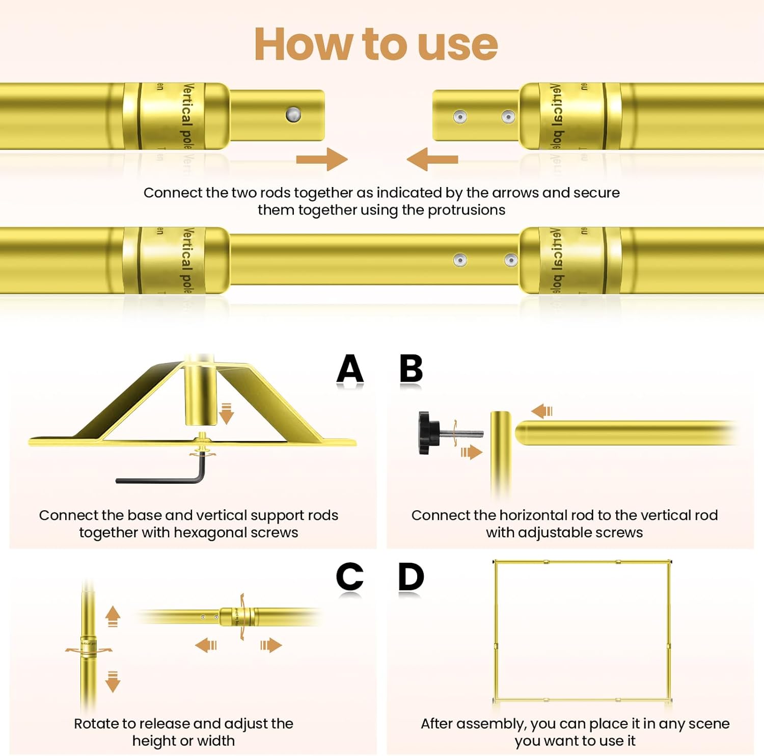 Jiang&Rong 10x10ft Heavy Duty Backdrop Stand Kit - Adjustable Step and Repeat Photo Banner Stand for Photography, Trade Shows, Photo Booths, Events(Golden)