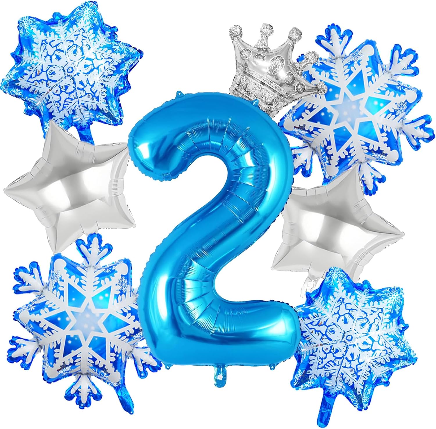 8Pcs Winter Wonderland Decorations - 40inch Blue Number 2 Balloons - Snowflake Mylar Balloons for Winter Wonderland Party Decorations - Birthday Decoration