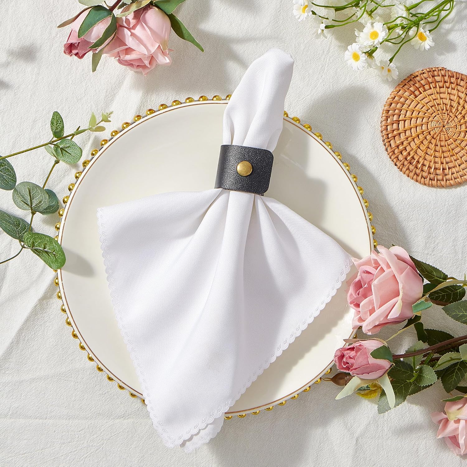 • 【DISPOSABLE DECOR】Leather rustic napkin rings bulk - Effortlessly elevate seasonal tablescapes from spring garden brunches to winter christmas. Engineered for versatility across wedding receptions, festive celebrations, and daily dining rituals.