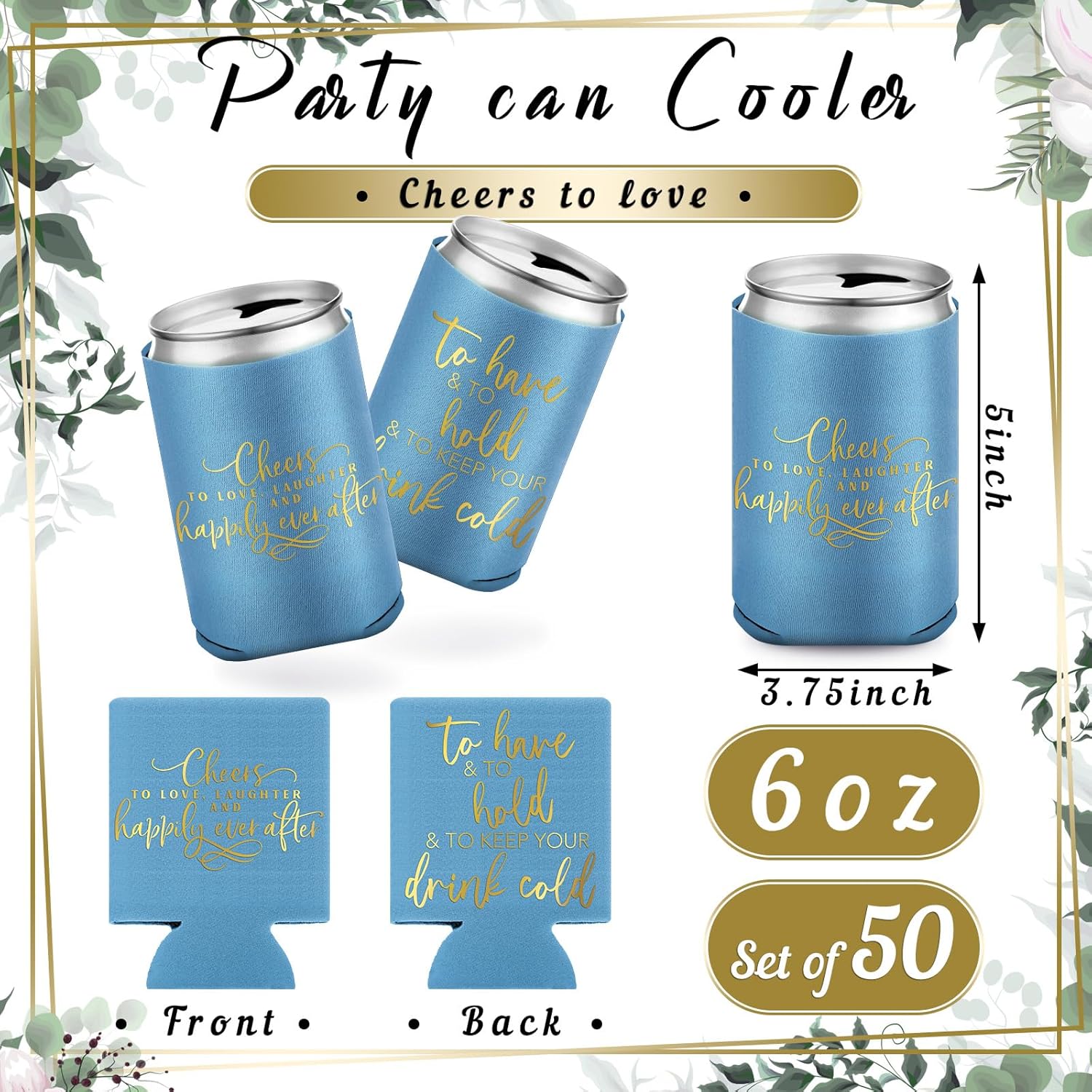 50 Pieces Wedding Can Cooler Bulk Engagement Party Favors for Guests Cheers to Love Laughter and Happily Ever After Rehearsal Dinner Decorations for Wedding Bridal(Haze Blue,Cute)