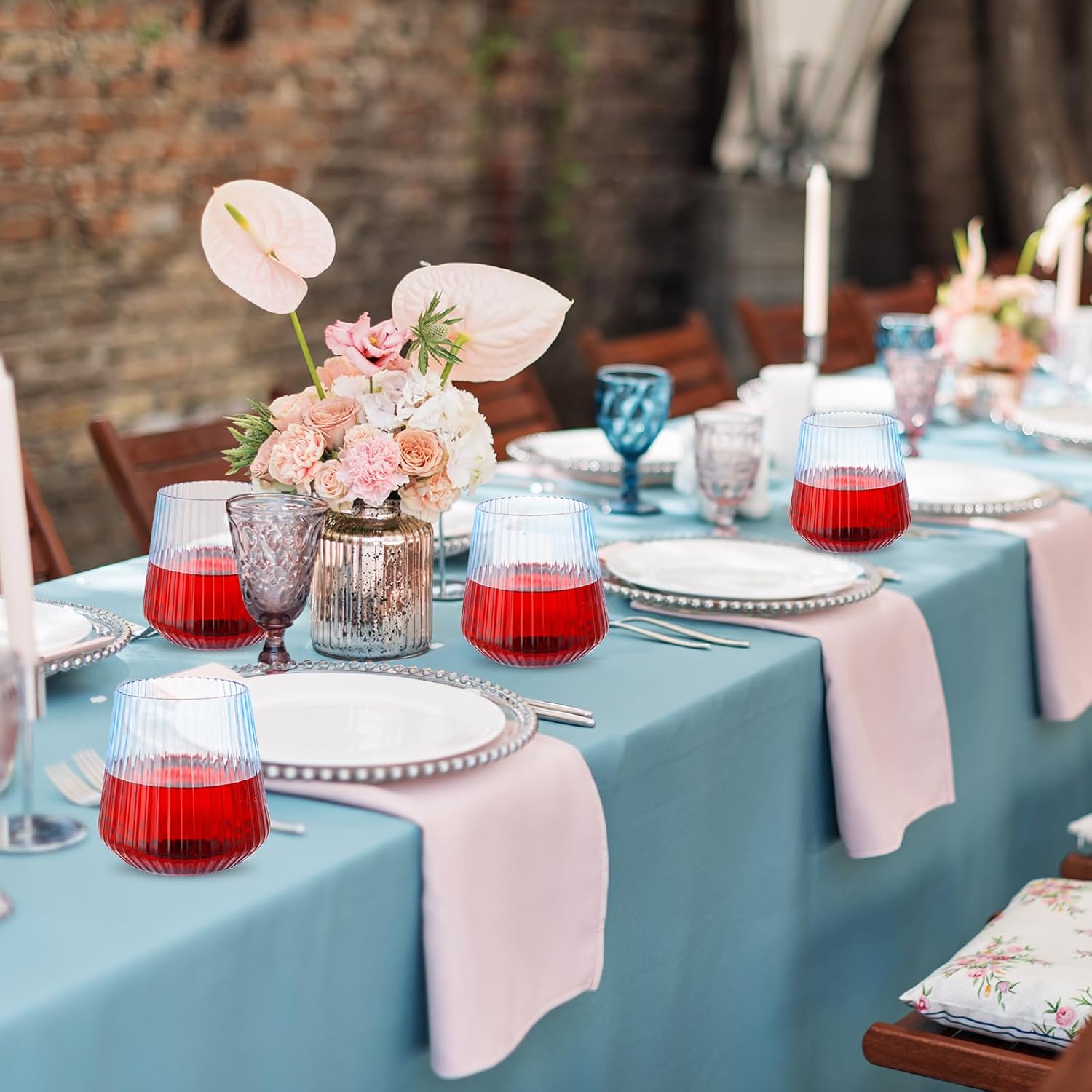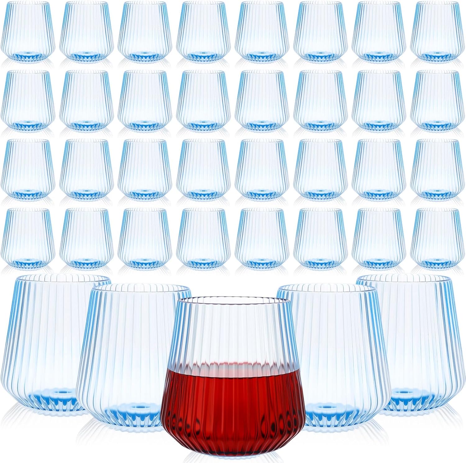 Suclain Plastic Wine Glasses Ribbed Stemless Wine Glasses 14oz Vertical Design Unbreakable Cups for Outdoor Indoor Vintage Elegant Champagne Whiskey Cups for Party Wedding(Blue,100 Pcs)