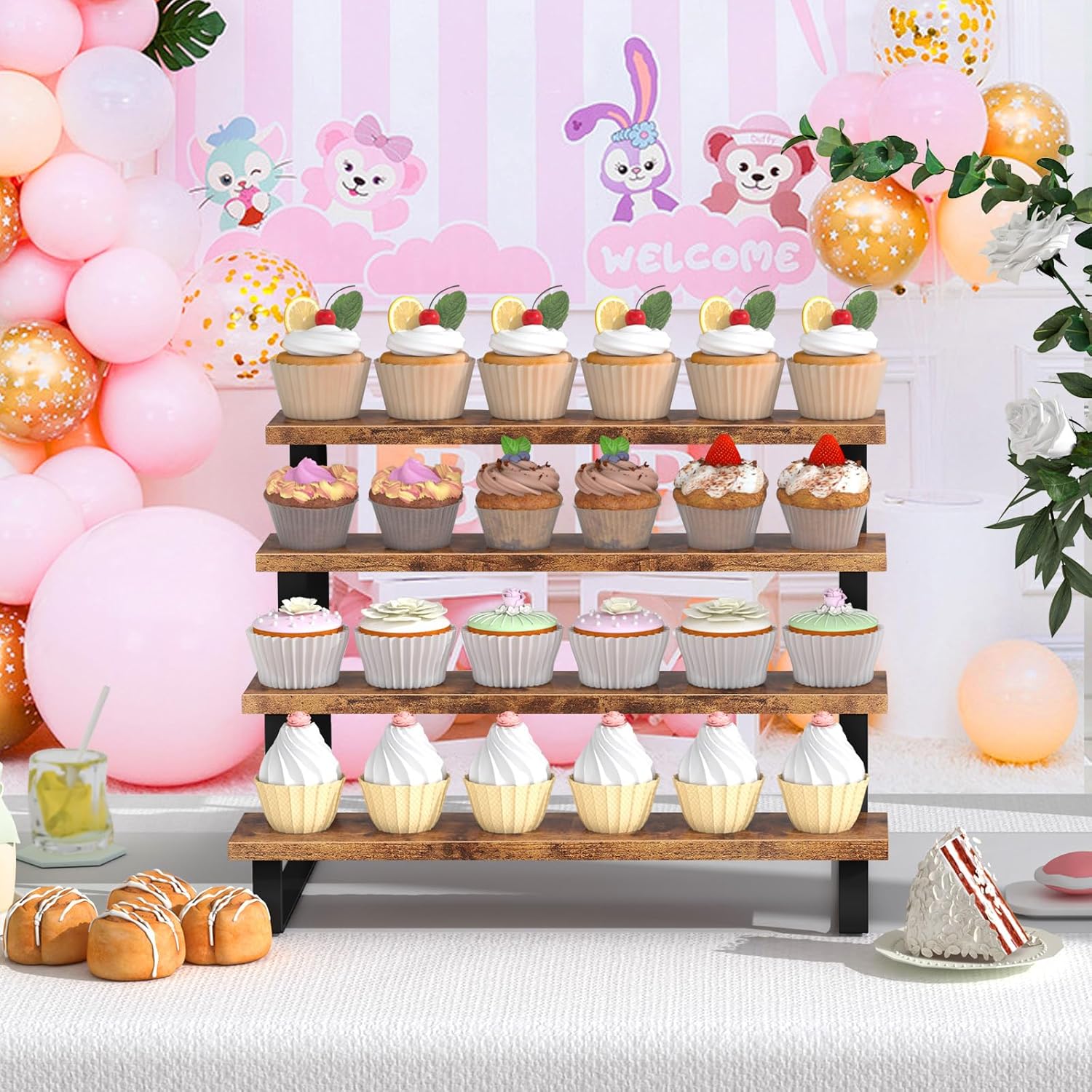 ELITEROO Cupcake Display Stand, 4 Tier Wooden Dessert Stand, Cookie Treat Stands for Dessert Table Set, Food Display Risers for Party Wedding Decor Birthday Graduation, Rustic Brown Straight