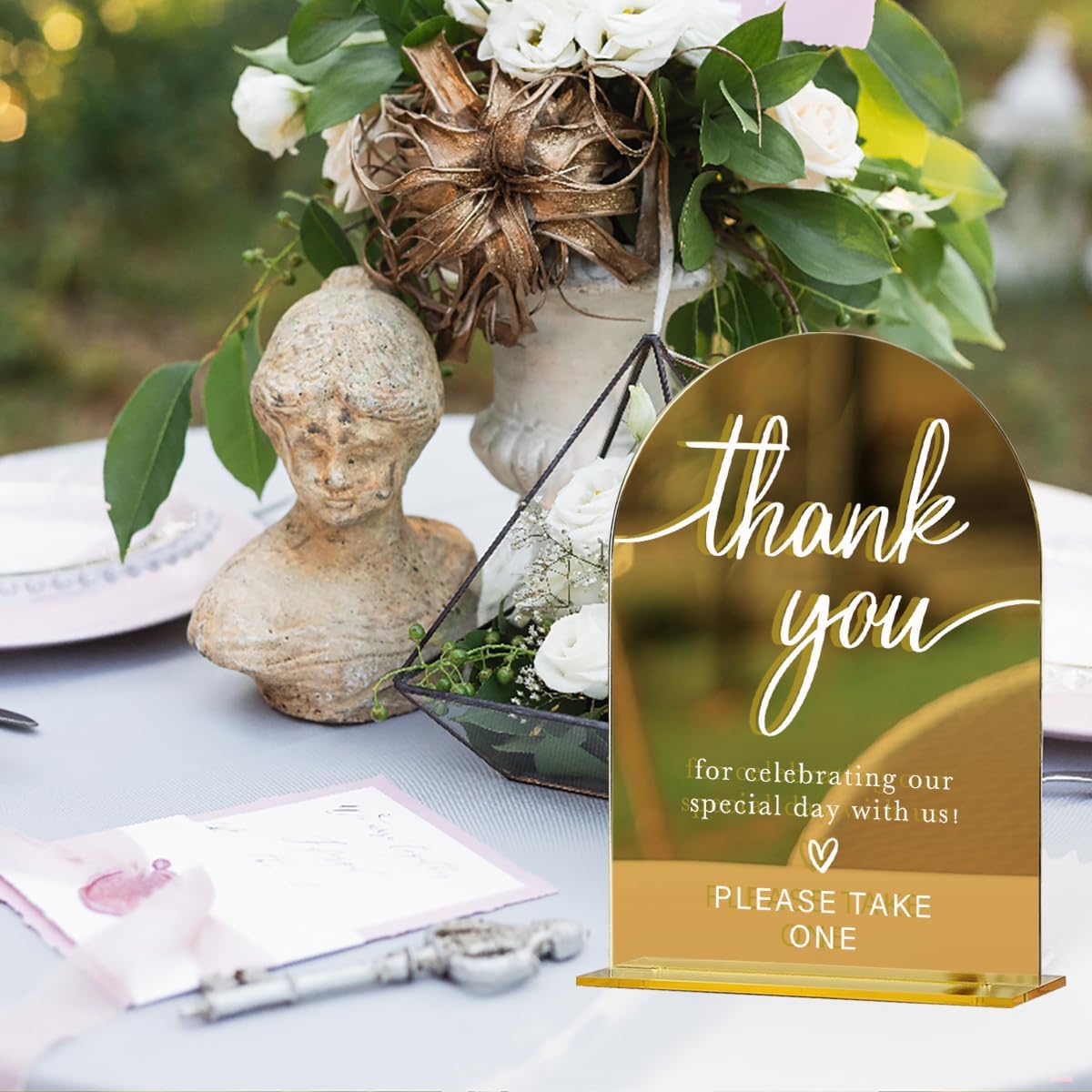 Acrylic Wedding Sign, Bridal Shower Decorations, Thank You Sign for Ceremony, Modern Font Table Signs, Gold Mirror Arched Acrylic Tabletop Signs for Wedding Reception and Event Party