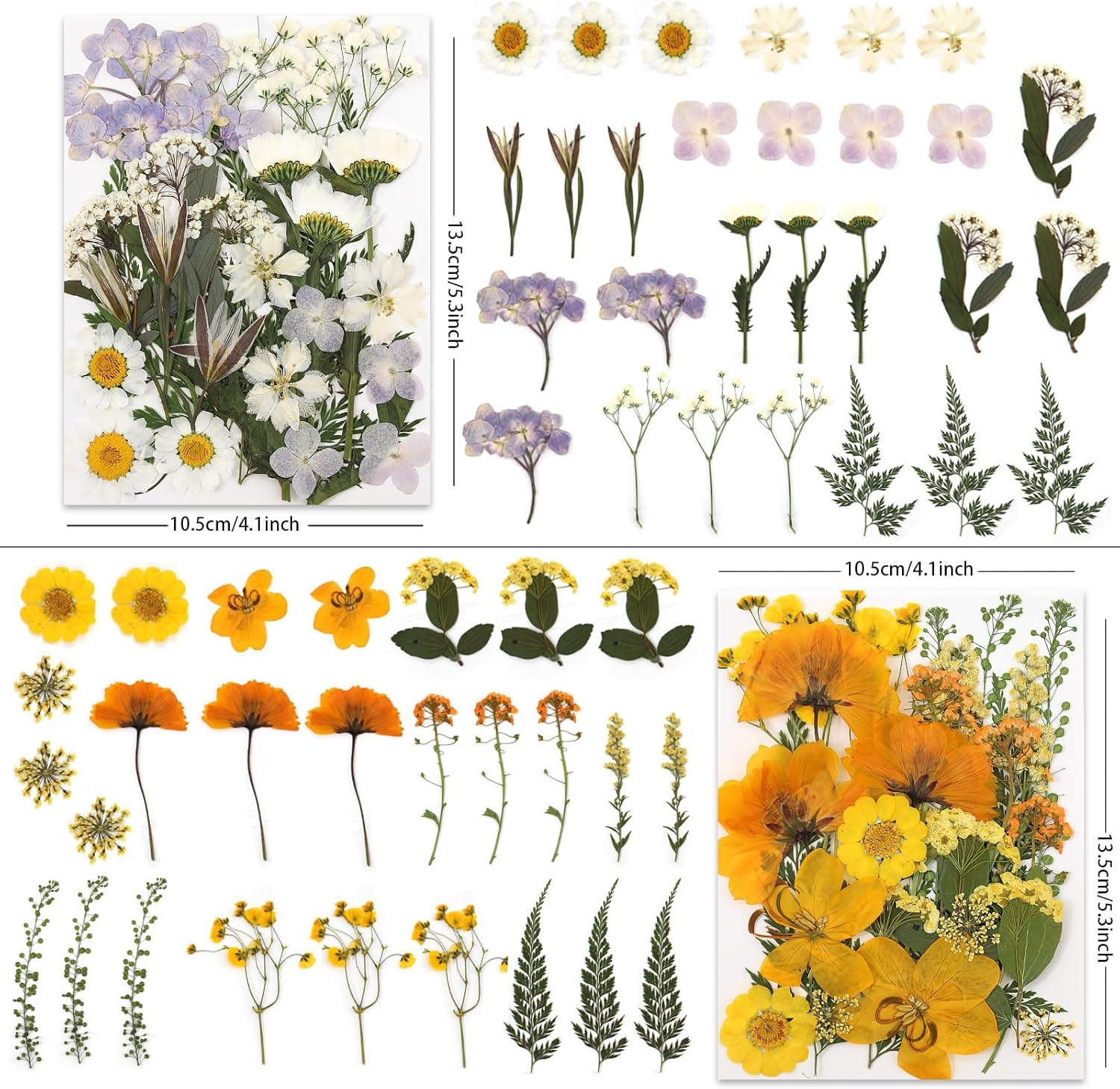 • Diverse Flower Varieties & Ample Quantity: 110PCS/4PK Bulk Pressed Flowers (Gypsophila, Hydrangea & more). Ample for dried pressed flowers art, resin molds, scrapbooking—unleash DIY creativity