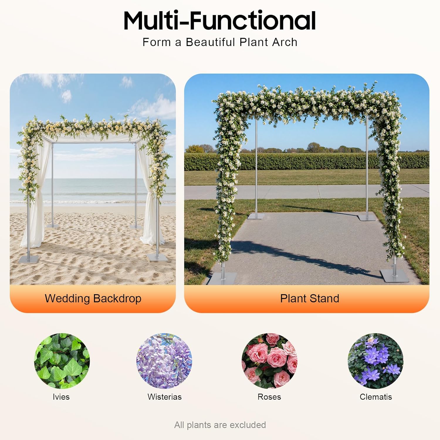 • Easy to Carry: The detachable and telescopic designs allow you to put the wedding arch stan in your trunk without taking up too much space, making it an ideal photographing tool or decorative support for outdoor use.