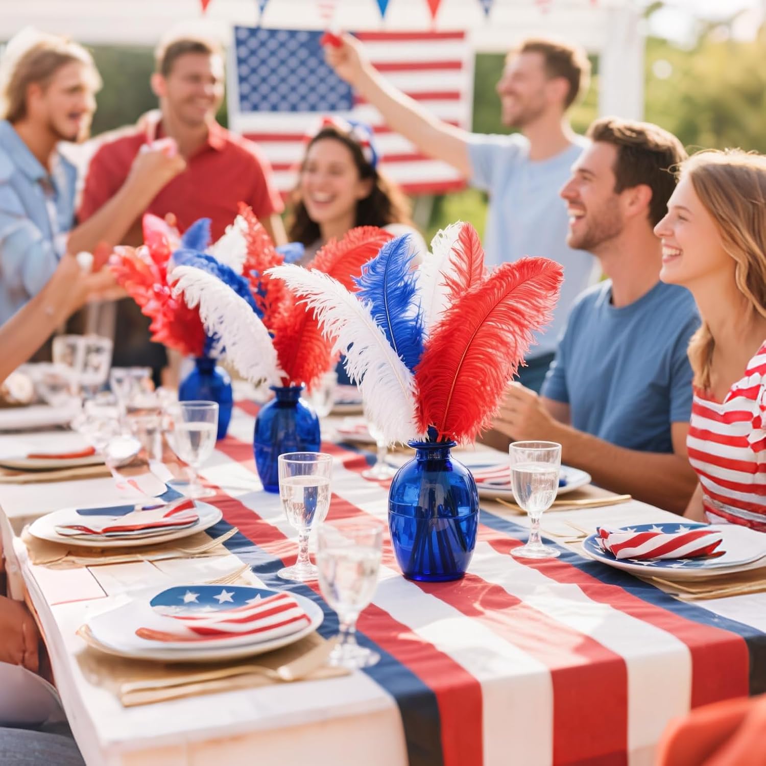 Holmgren Red White and Blue Ostrich Feathers - 20pcs Making Kit 22 Inch 4th of July Decor Ostrich Feathers Bulk for Vase, Floral Arrangement, Wedding Party Centerpieces and Home Decorations