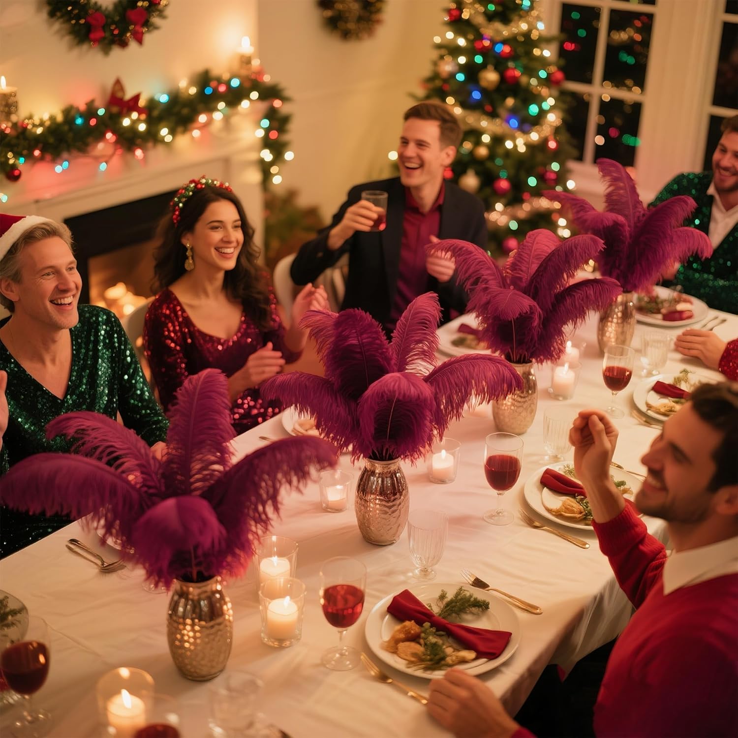 Holmgren Burgundy Ostrich Feathers Bulk - 20pcs Making Kit 22 Inch Wine Red Ostrich Feathers for Vase, Floral Arrangement, Wedding Party Centerpieces and Christmas Home Decorations