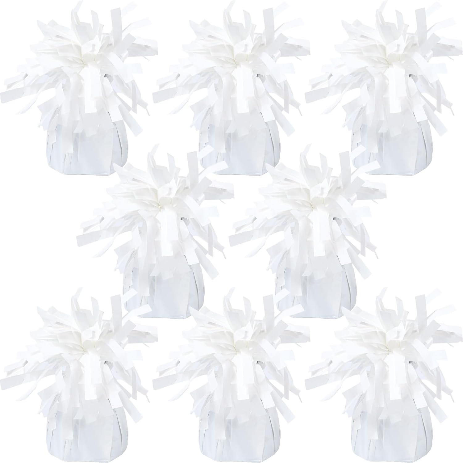 8 Pcs White Metallic Balloon Weights Holder Anchors Balloon Holder Weights for Helium Balloons Birthday Graduation Party Christmas Wedding Celebration Decoration (White)