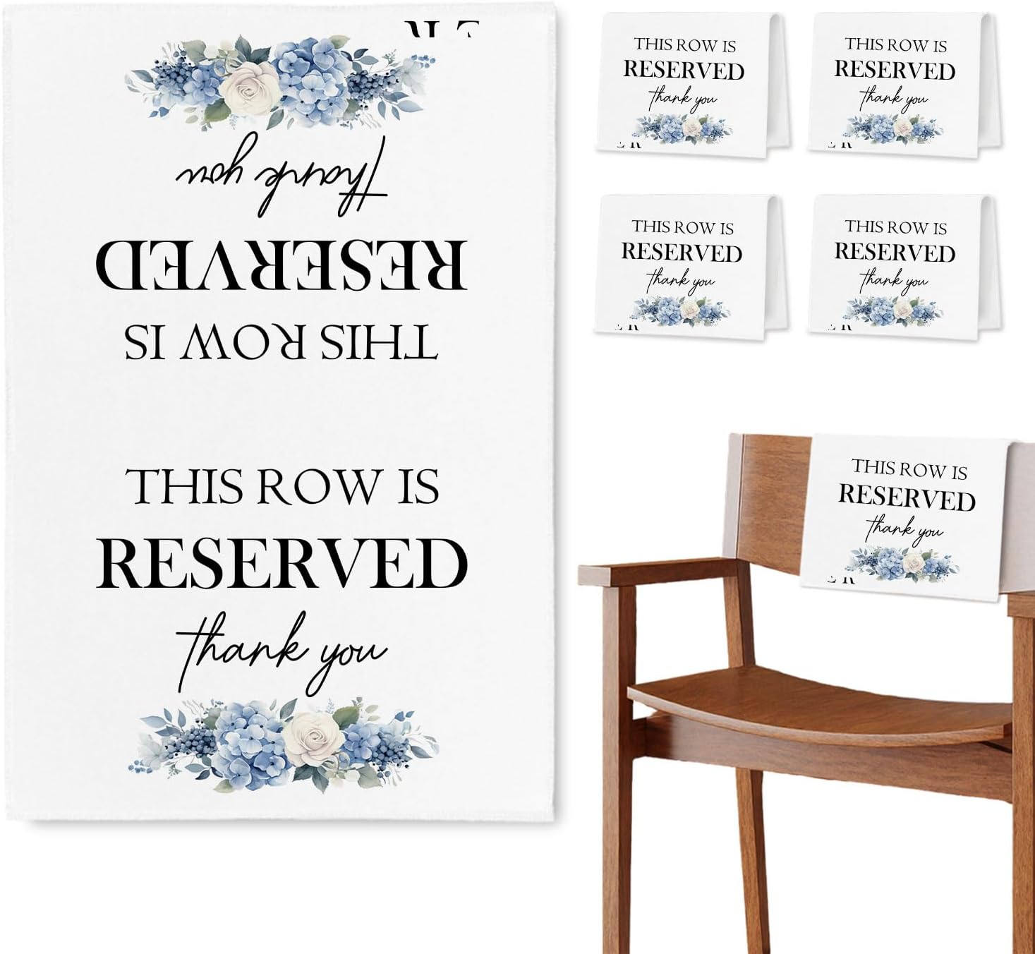Reserved Seating Chair Signs, This Row Is Reserved Pew Cloths Seating Placeholder for Church Pews, Wedding Decorations for Reception Parties Celebrations Event Meetings (Blue Floral, 4 PCS)