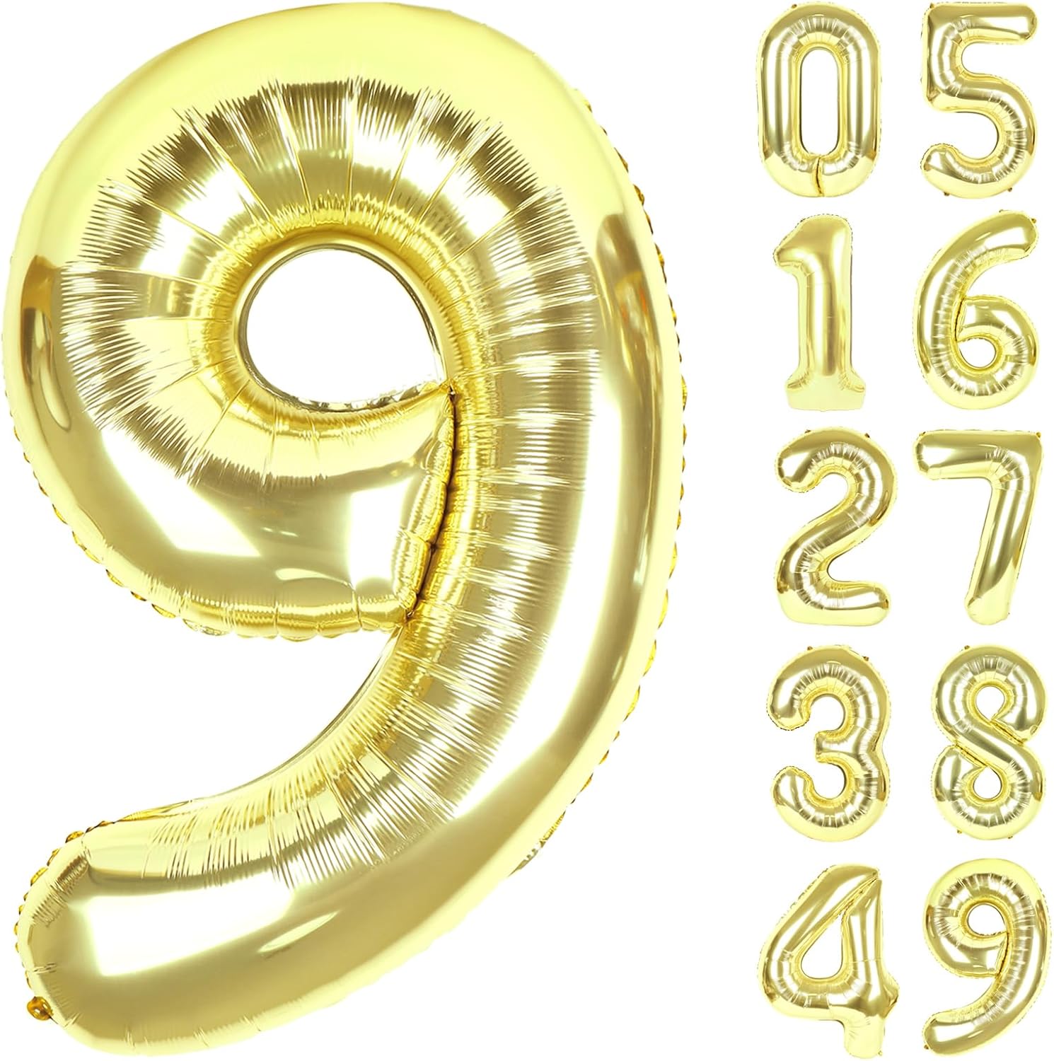 • 1.Make Party Charming with Champagne Gold Number Balloon:You will receive an uninflated 40 inch number 9 balloon.Large number balloons are always the best statement of romance and surprise.Light gold balloons symbolize vitality exoticism,adding glamour to birthday parties.Bright metallic champagne gold and huge size make birthday decorations for men a highlight of special parties.Choose one or more numbers from 0-9 number balloon,and use 9 19 29 69 90 99 balloon numbers to create a lively party!