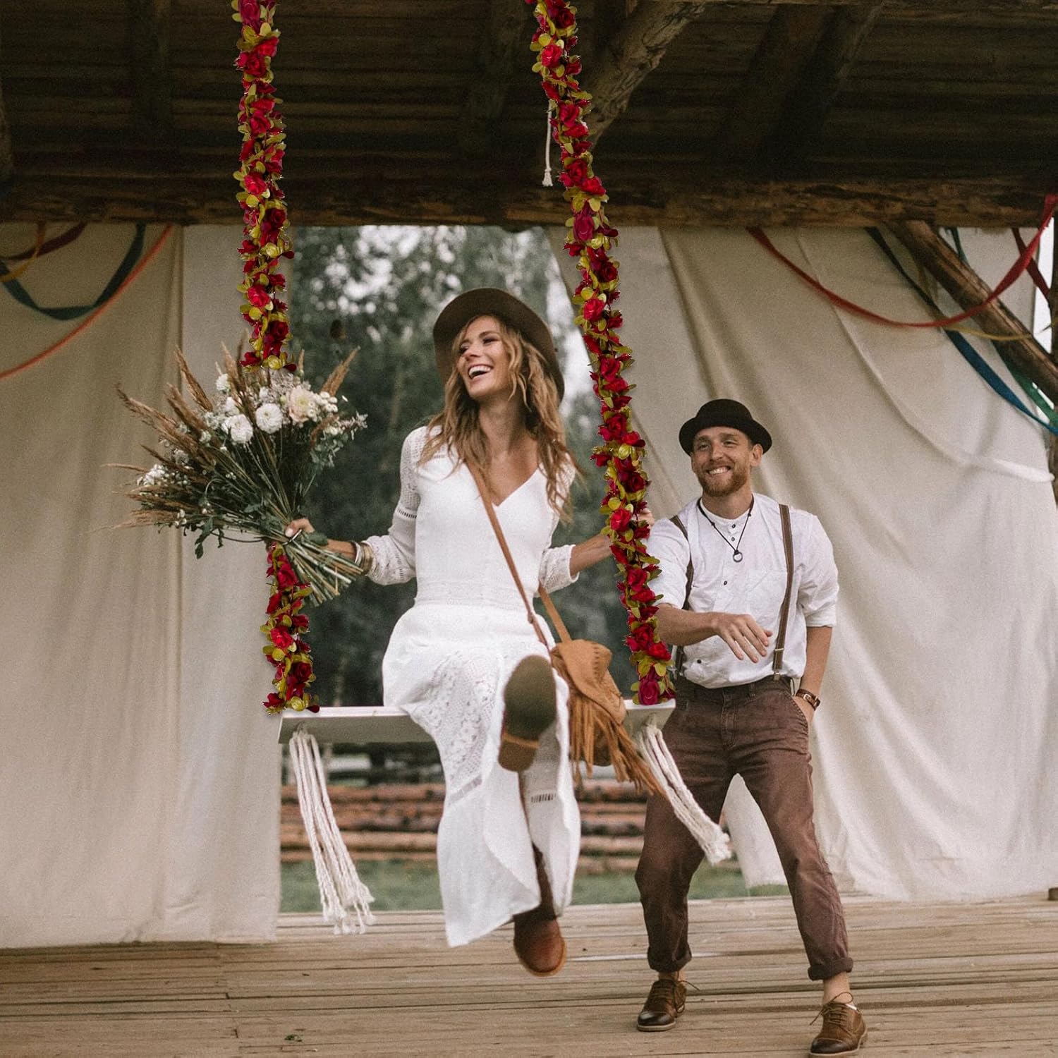 • 【Artificial Rose Garland】Fake rose garland with vibrant colors, perfect for creating a dreamy atmosphere. They could also decorate your space with the string lights. Adding more romantic and full-of-life atmosphere to you all.
