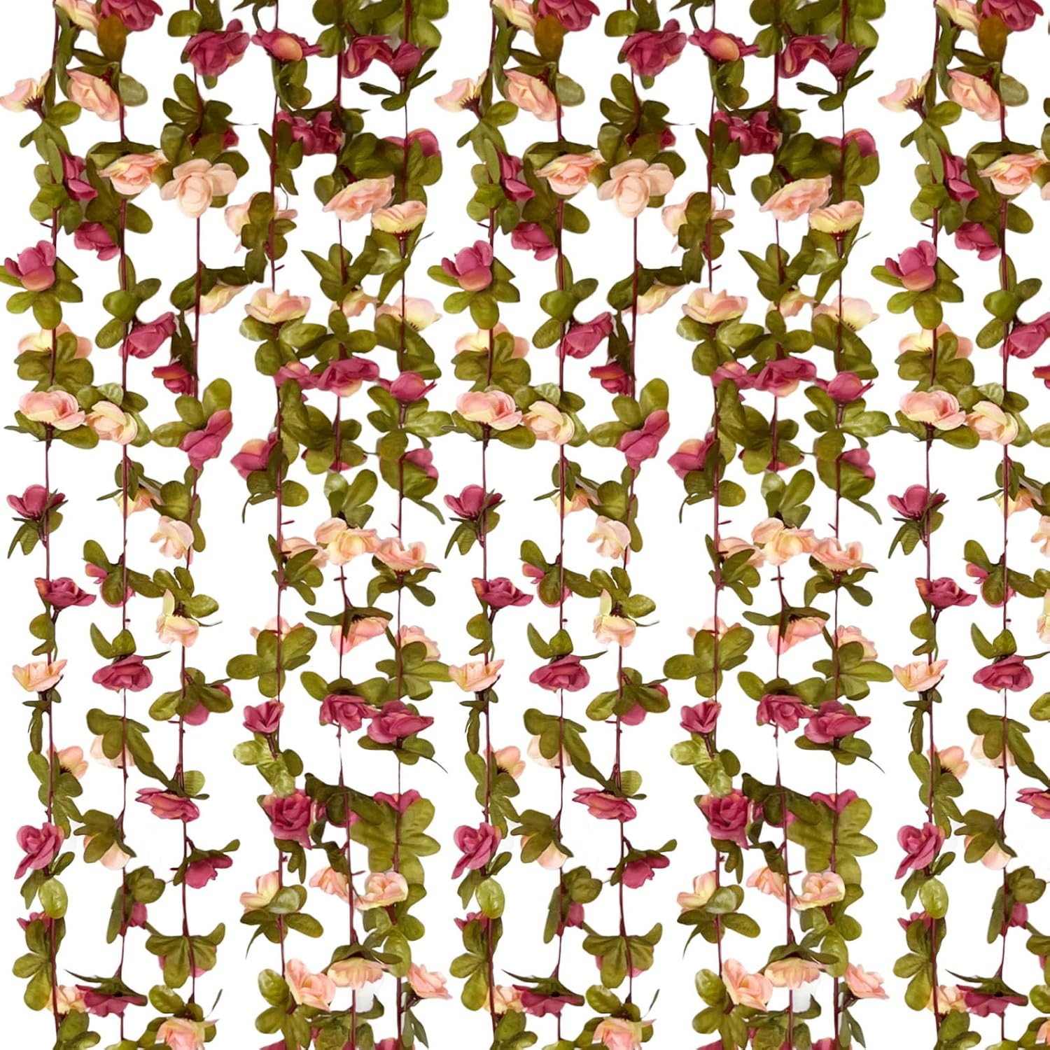 16Pcs 126Ft Dark Pink&Yellow Rose Garland, Fake Rose Hanging Flowers, Artificial Flower Vine, Hanging Floral Vine Garland for Wedding, Wall Arch, Halloween, Christmas Garden Backdrop Decor