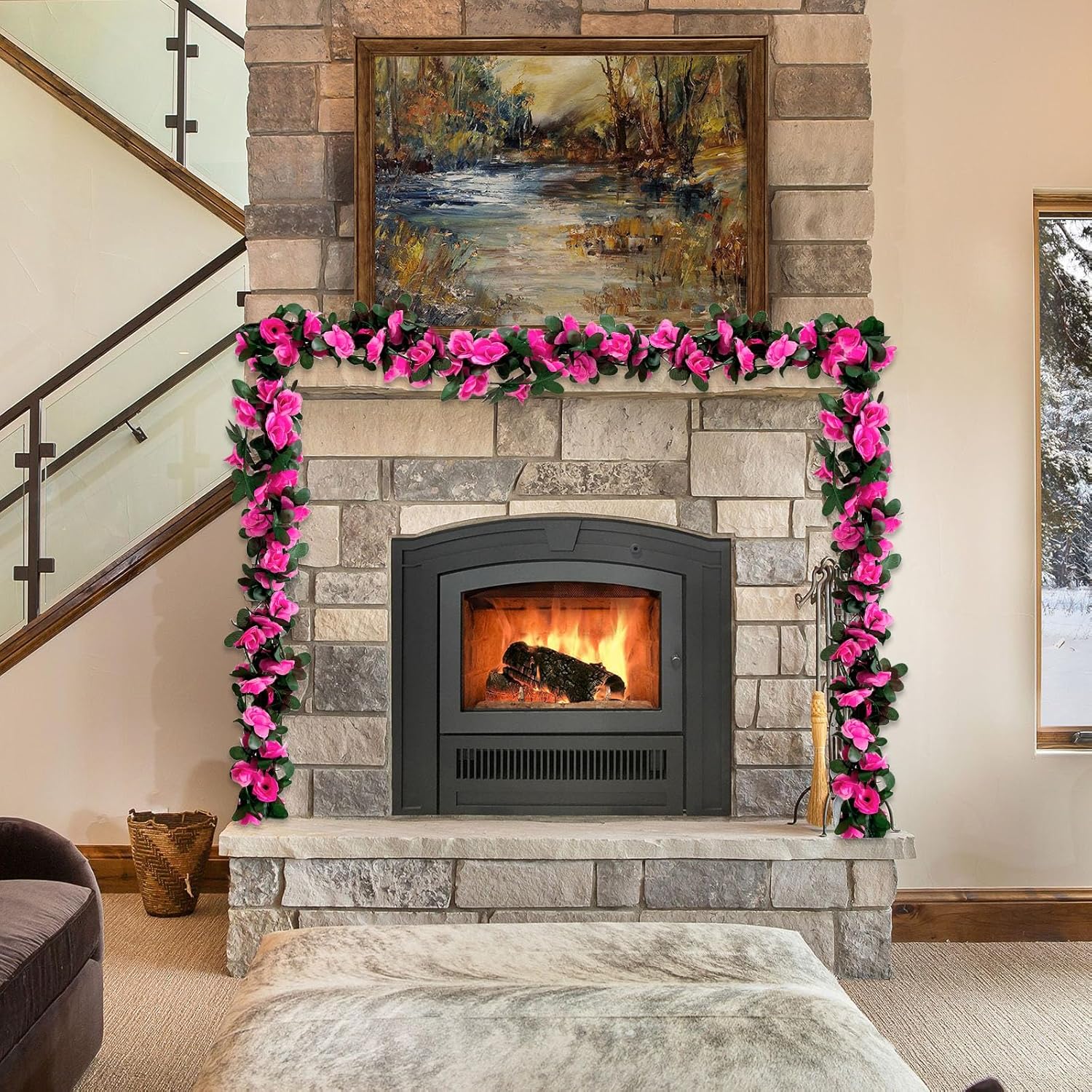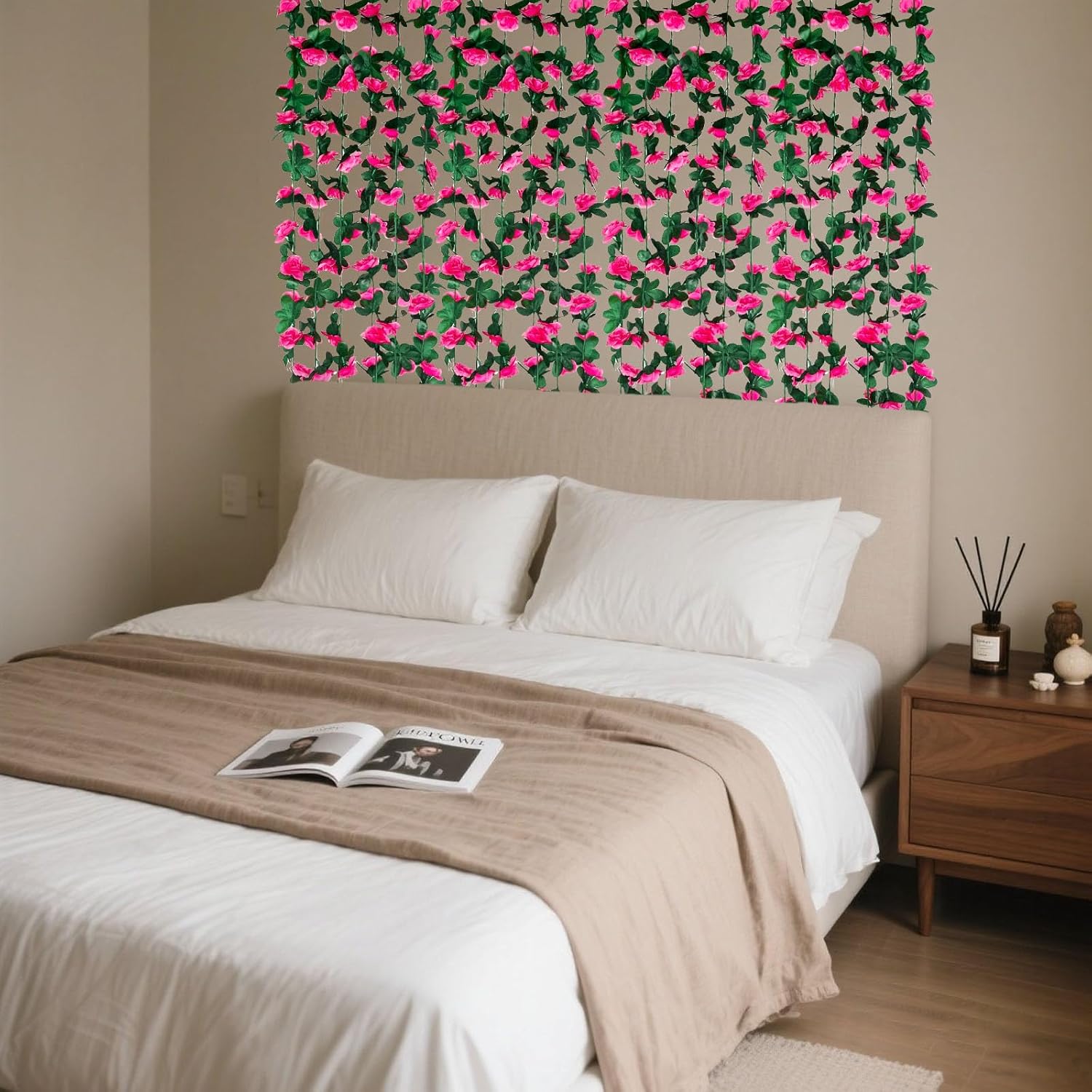 16Pcs 126Ft Fuchsia Rose Garland, Fake Rose Hanging Flowers, Artificial Flower Vine, Hanging Floral Vine Garland for Wedding, Birthday Party, Wall Arch, Halloween, Christmas Garden Backdrop Decor