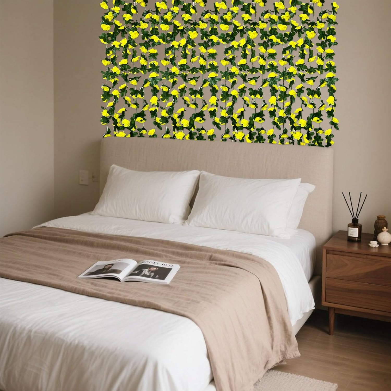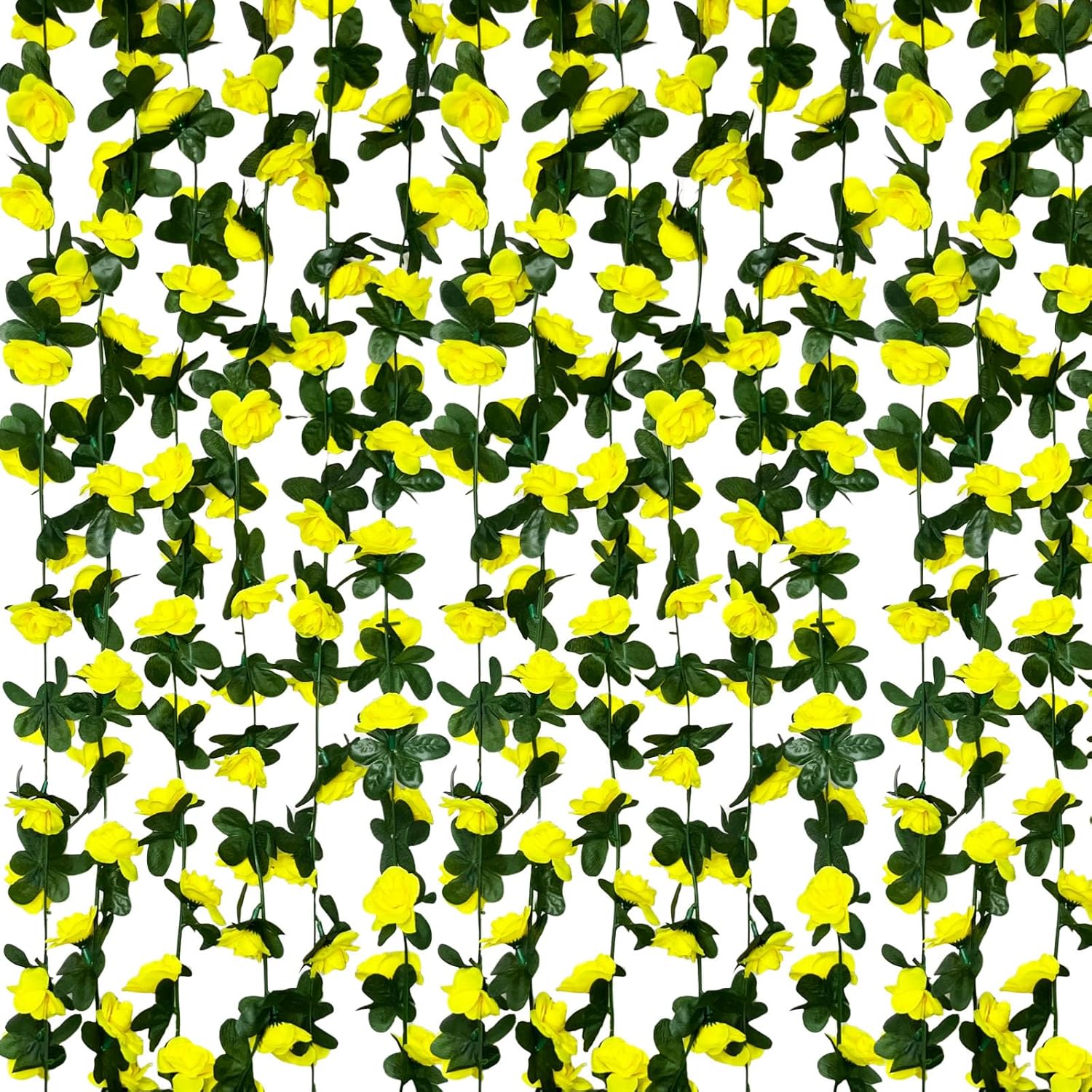8Pcs 63Ft Yellow Rose Garland, Fake Rose Hanging Flowers, Artificial Flower Vine, Hanging Floral Vine Garland for Wedding, Birthday Party, Wall Arch, Halloween, Christmas Garden Backdrop Decor