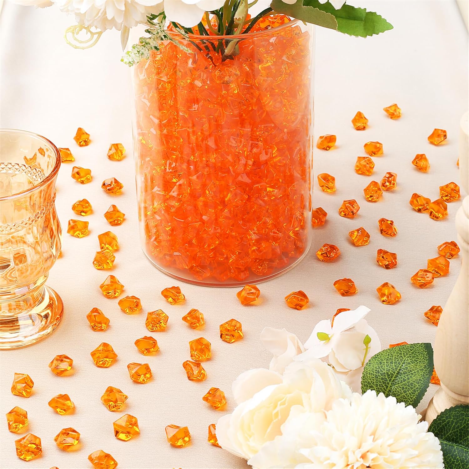 YATOJUZI 500pcs Fake Ice Cubes Orange Acrylic Crushed Rocks Vase Fillers Plastic Diamonds Gems for DIY Party Wedding Centerpiece Table Scatter Prop Display 0.5" (Only Orange)