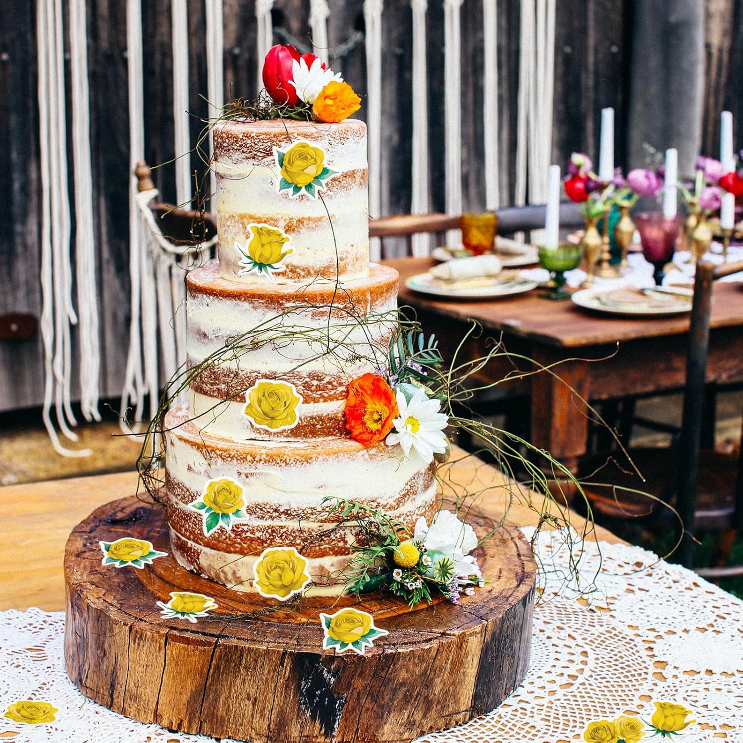 48PCS Edible Rose Flower Cupcake Toppers Wafer Paper Roses Decorations Flower Birthday Party Decorations Rose Cake Toppers for Wedding Engagement Birthday Party Cake Decor Supplies (Yellow)
