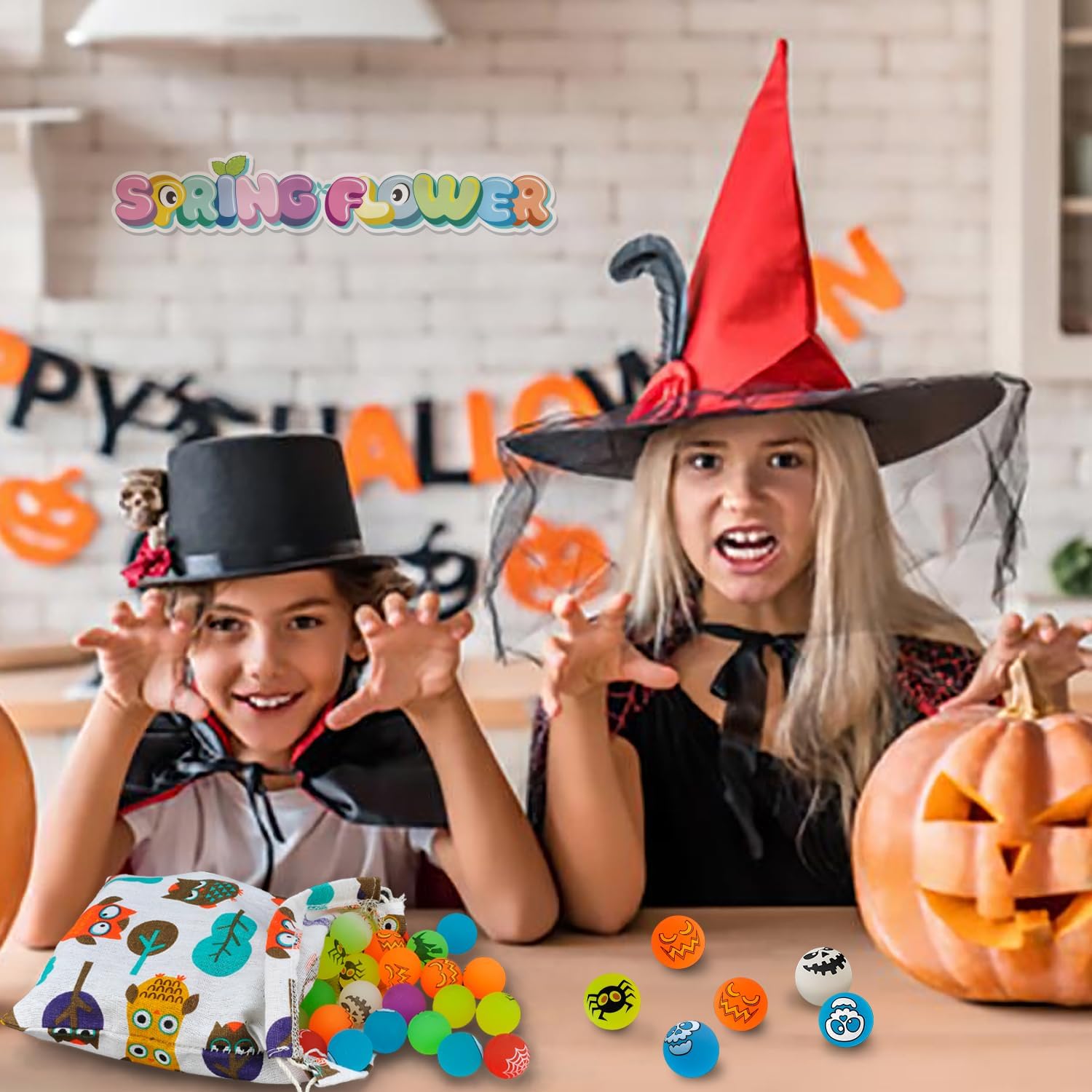 SpringFlower 100 Pcs Glow in The Dark Bouncing Balls,Halloween Party Favors Supplies, Trick or Treating Goodie Bag Filler,School Classroom Game Rewards, 10 Assorted Halloween Theme Designs