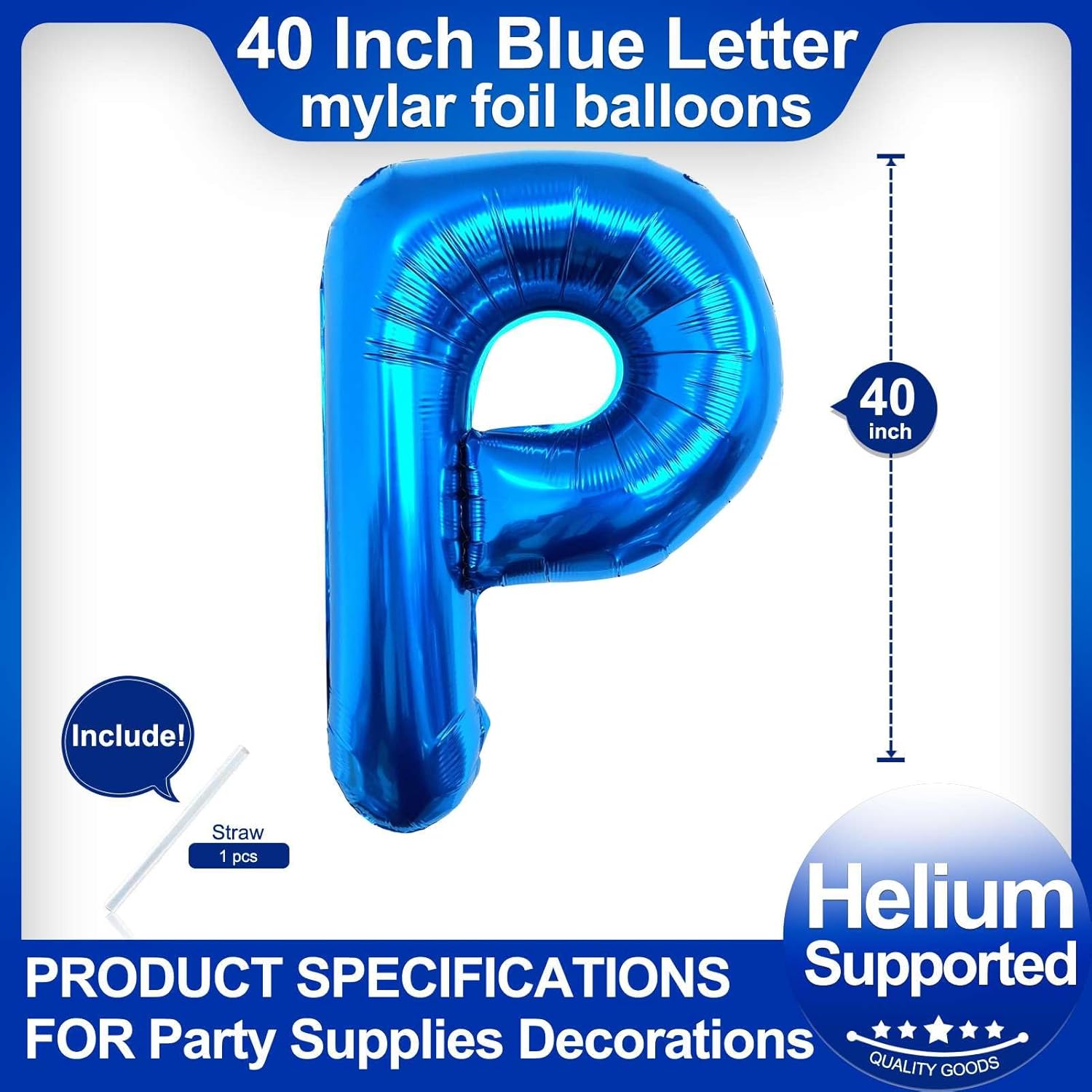 • Package included:One Blue Letter P Balloon*1,straw*1,40 inch Blue letter balloon