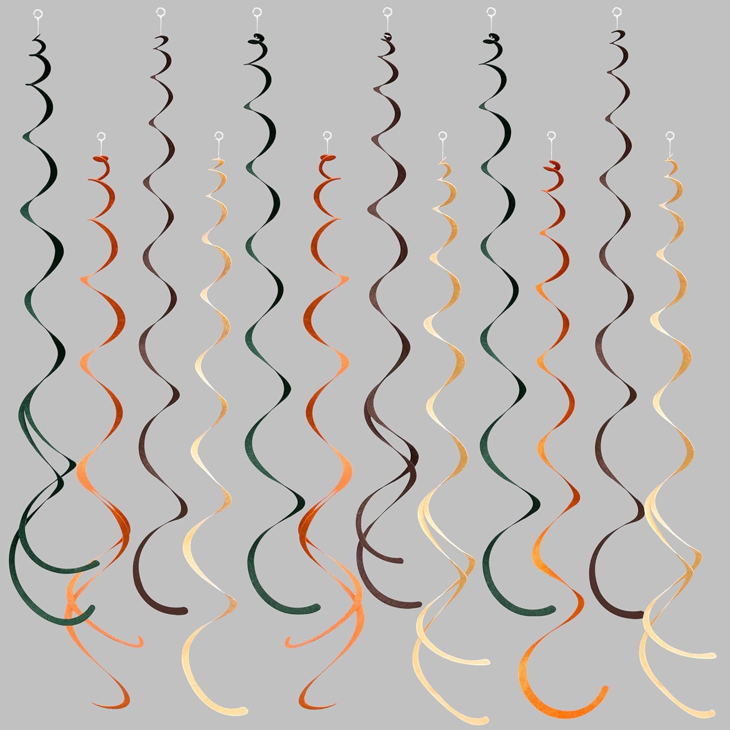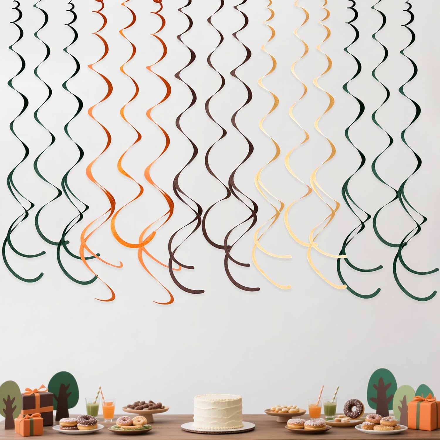 36 Pcs Green Brown Orange Beige Hanging Swirl Decorations Felt Swirl Streamer Spiral Ceiling Garland for Woodland Safari Jungle Wild One Birthday Neutral Baby Shower Party Decorations Supplies