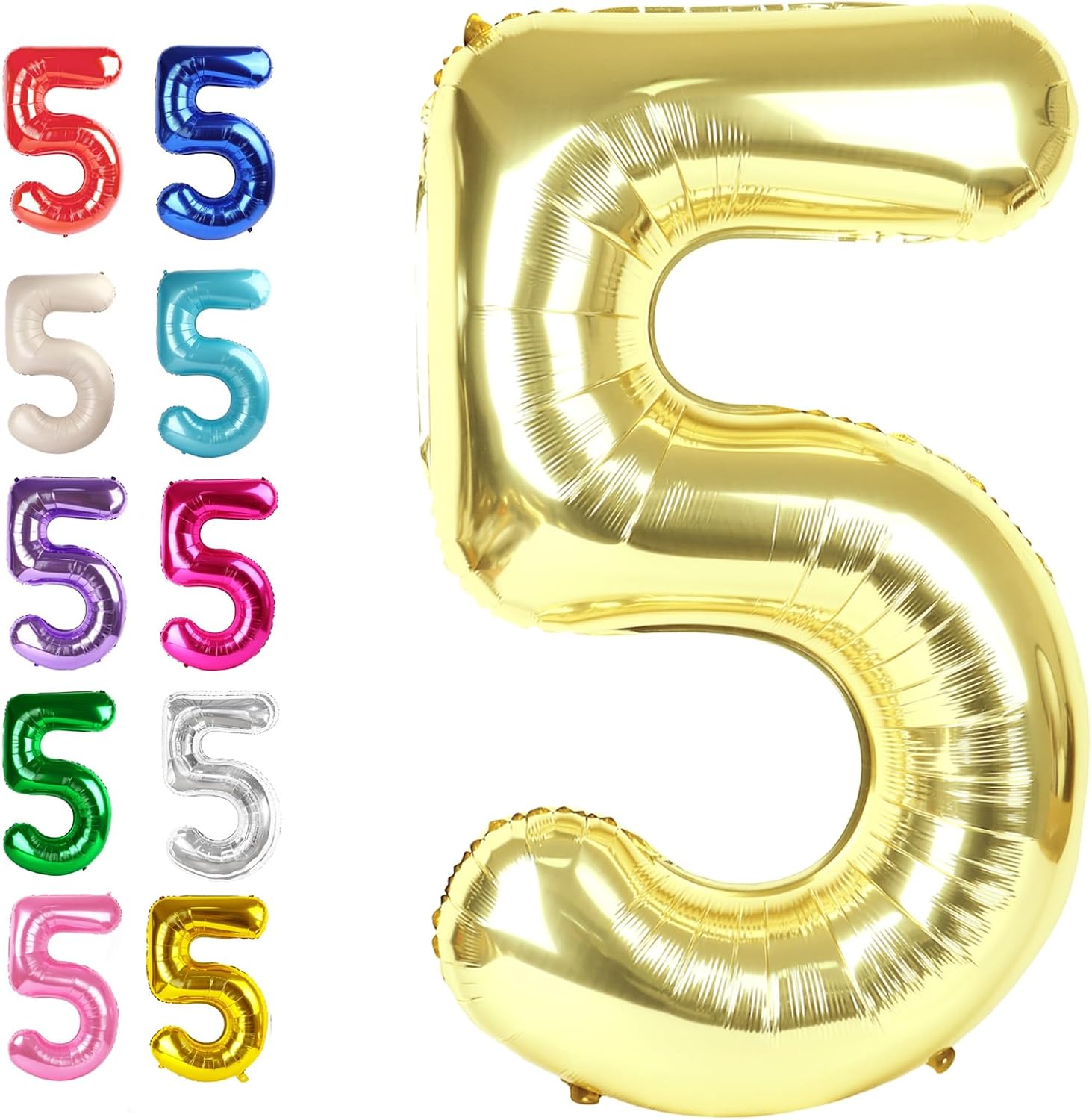 • 1.Noble Romantic Champagne Gold Number Balloons:You will receive an uninflated 40 inch light gold number 5 balloon.Balloons are always the best statement of romance surprise.Gold happy birthday balloons symbolize eternal magical,adding glamour to light gold birthday parties.Elegant gold and huge size make light gold balloon birthday a highlight of special parties.Choose one or more numbers from 0-9 numberballoon,and use 5th 5 15 25 35 45 55 65 75 85 95 balloons number to create a lively party!