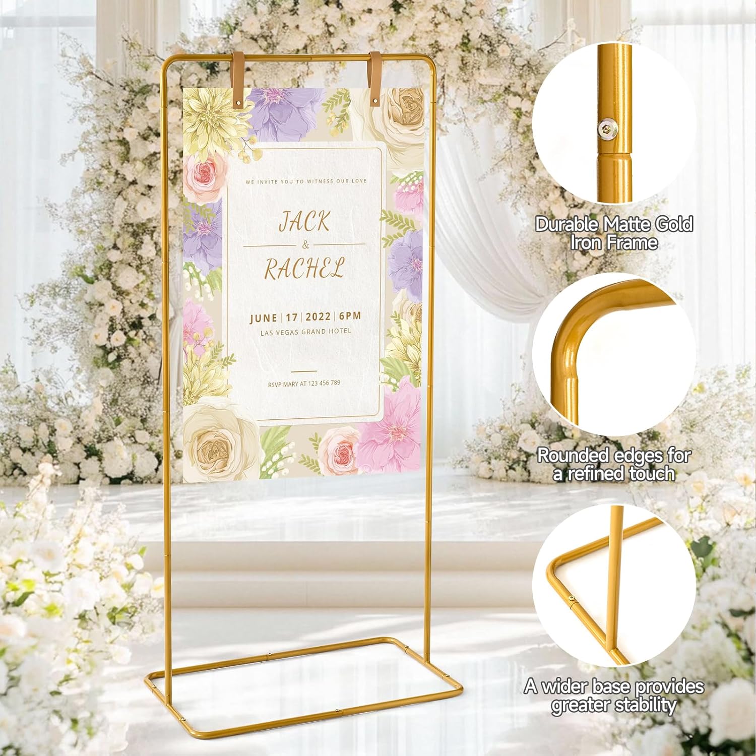 • Sturdy & Durable Design – Crafted from high-quality metal with a rust-resistant finish, this sign holder ensures stability indoors or outdoors. Ideal for ceremonies, parties, or retail displays.