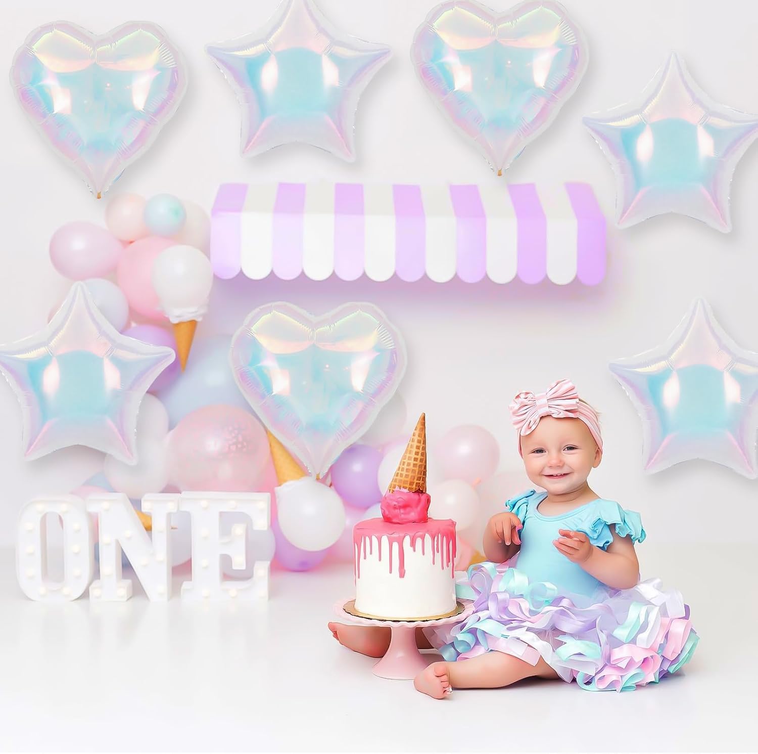 9Pcs Iridescent Foil Balloons, 18in Heart Star Iridescent Balloons Large Holographic Clear Foil Balloon for Birthday Baby Shower Mermaid Rainbow Bachelorette Wedding Party Decorations