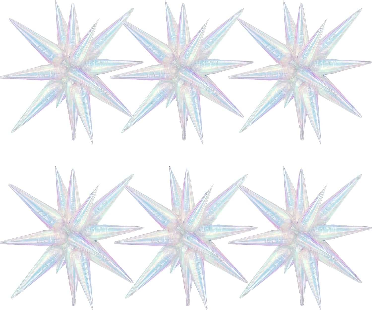 Iridescent Star Foil Balloons, 6Pcs 22in Explosion Star Balloon Large Holographic Spike Cone Clear Foil Balloon for Birthday Baby Shower Mermaid Rainbow Wedding Party Decorations