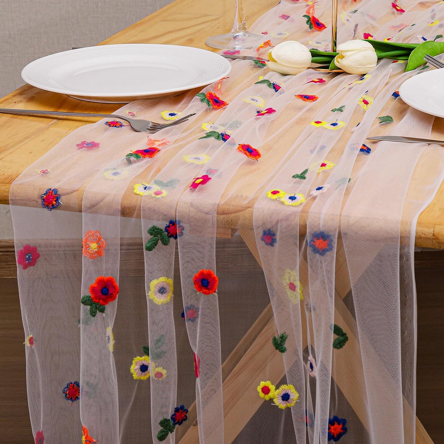 • High-Quality Tulle Fabric: Made from white chiffon fabric, this lightweight embroidered table runner is not only beautiful but also adds a touch of elegance to your dining experience. Each sheer floral table runner measures approximately 29 x 120 inches.