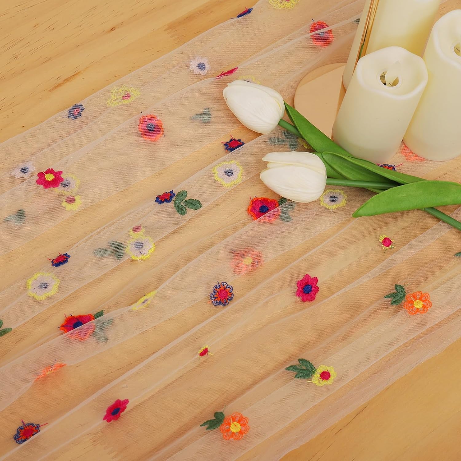 • Daisy Decorations for Every Season: These embroidered tulle are perfect for rustic weddings, holiday dinners, or as year-round decor for any room.