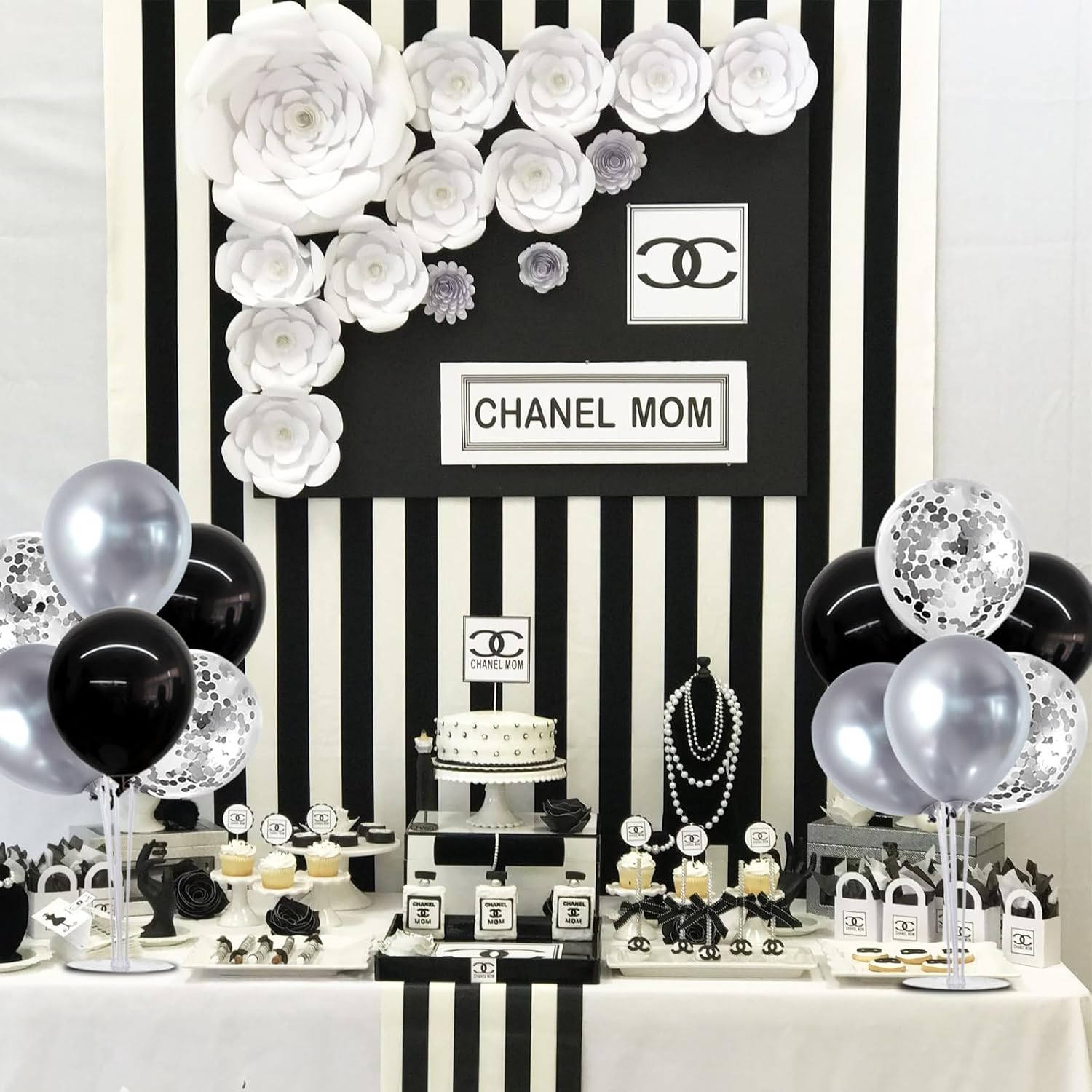 TONIFUL 4 Set Black and Silver Balloons Stand Centerpiece Table Decorations for Birthday, Baby Shower, Wedding, Halloween and Anniversary Party Decorations Graduations