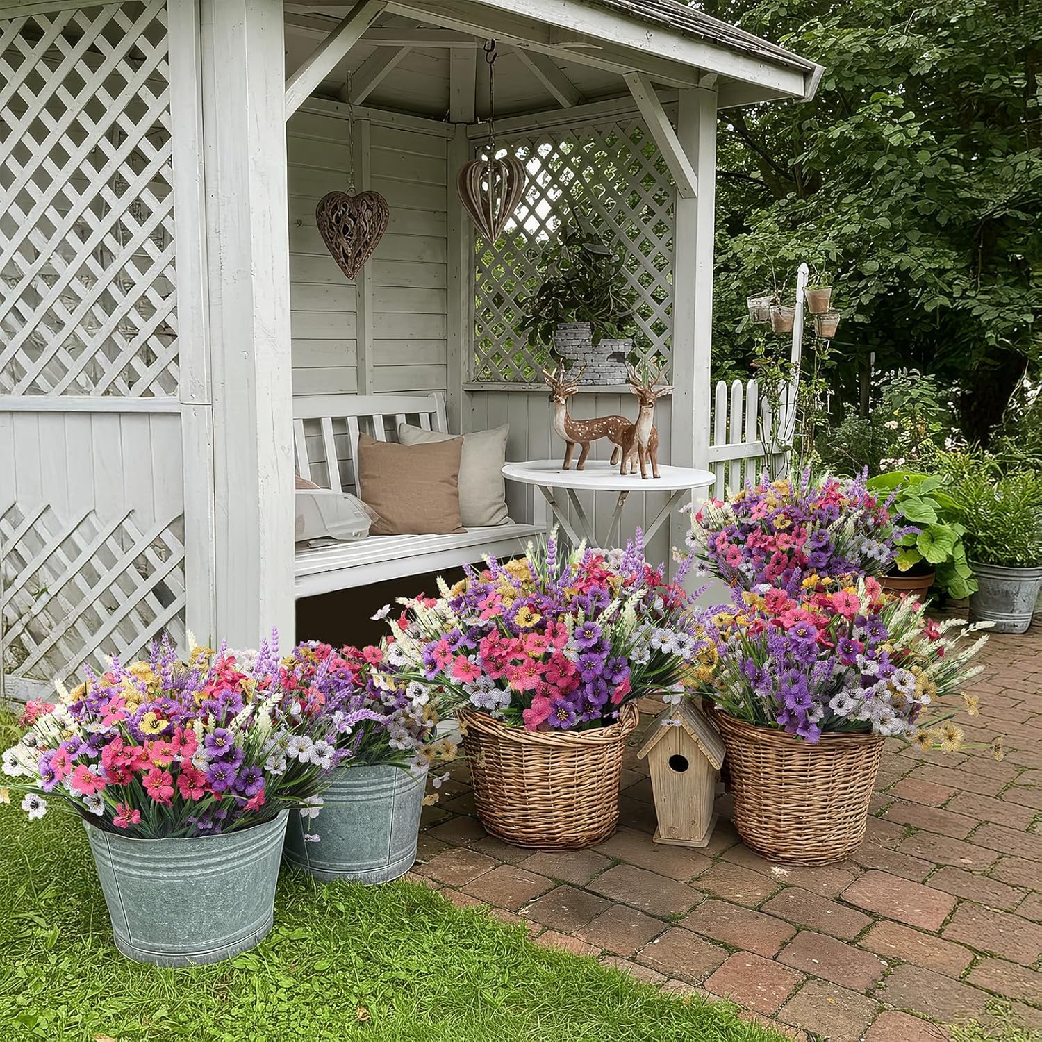 Artificial Flowers for Outdoors 24 Bundles, UV Resistant Colorful Fake Silk Flower Outdoor Planter Garden Decor Indoor Decorations