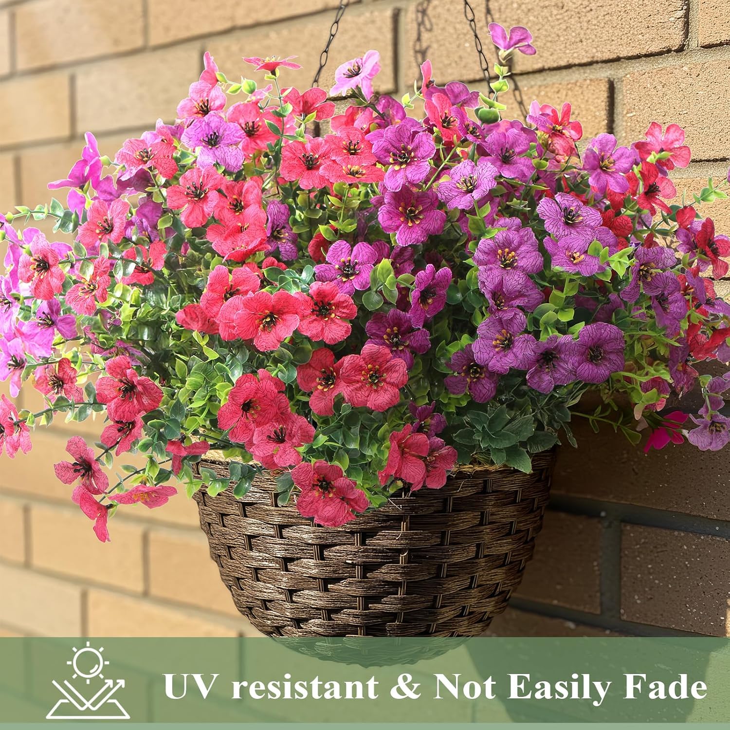 • UV Resistant Outdoor Artifical Flowers: These fake flowers are made of UV-coated silk flowers and plastic eucalyptus leaves that can withstand sunlight and wind, maintain their brilliance