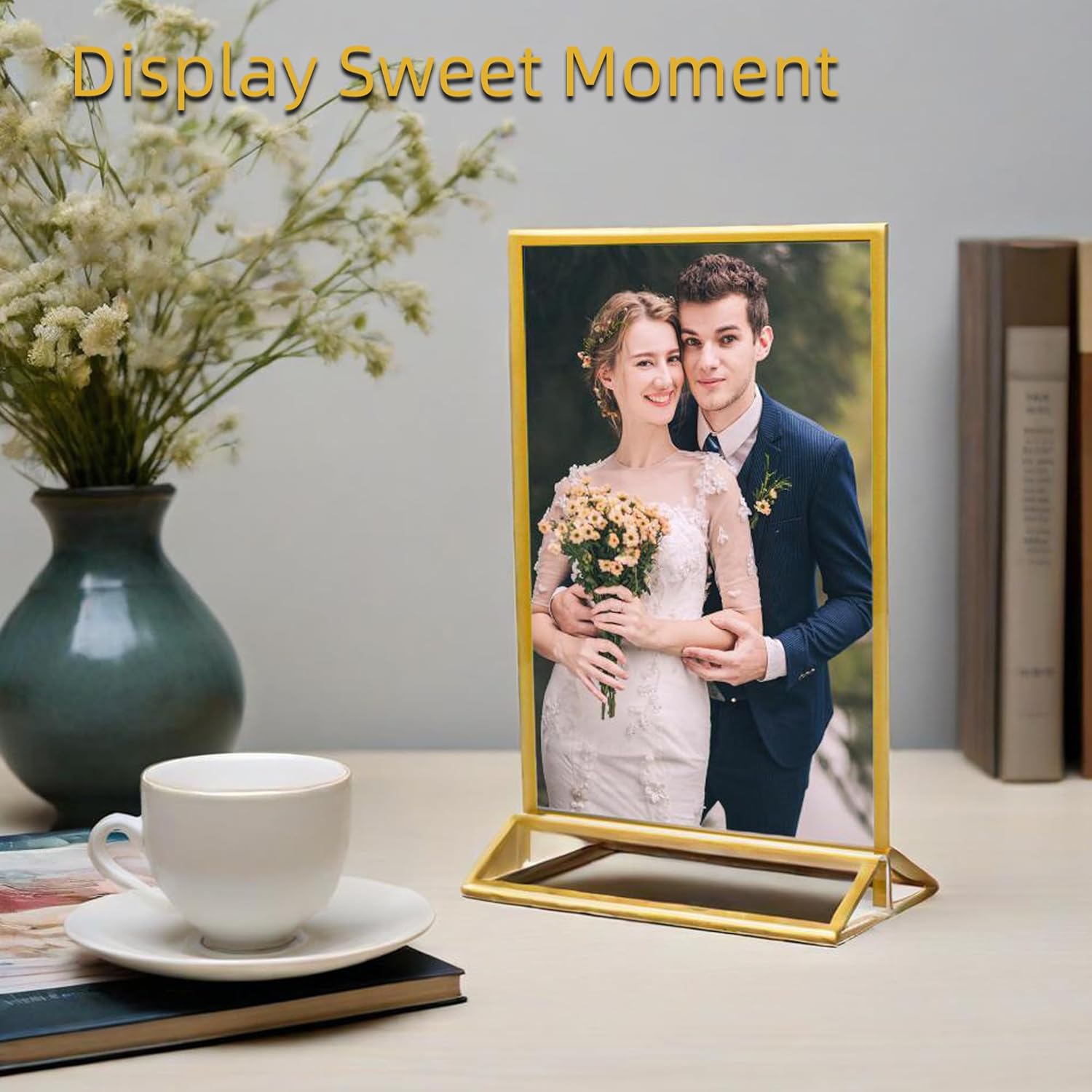 6 Pack Acrylic Sign Holder 5x7" Photo Frames, Double-sided Clear Menu Holder Gold Picture Frames for Wedding Table Numbers, Table Top Display Sign Stand Plastic Flyer Holder Vertical Paper Holder