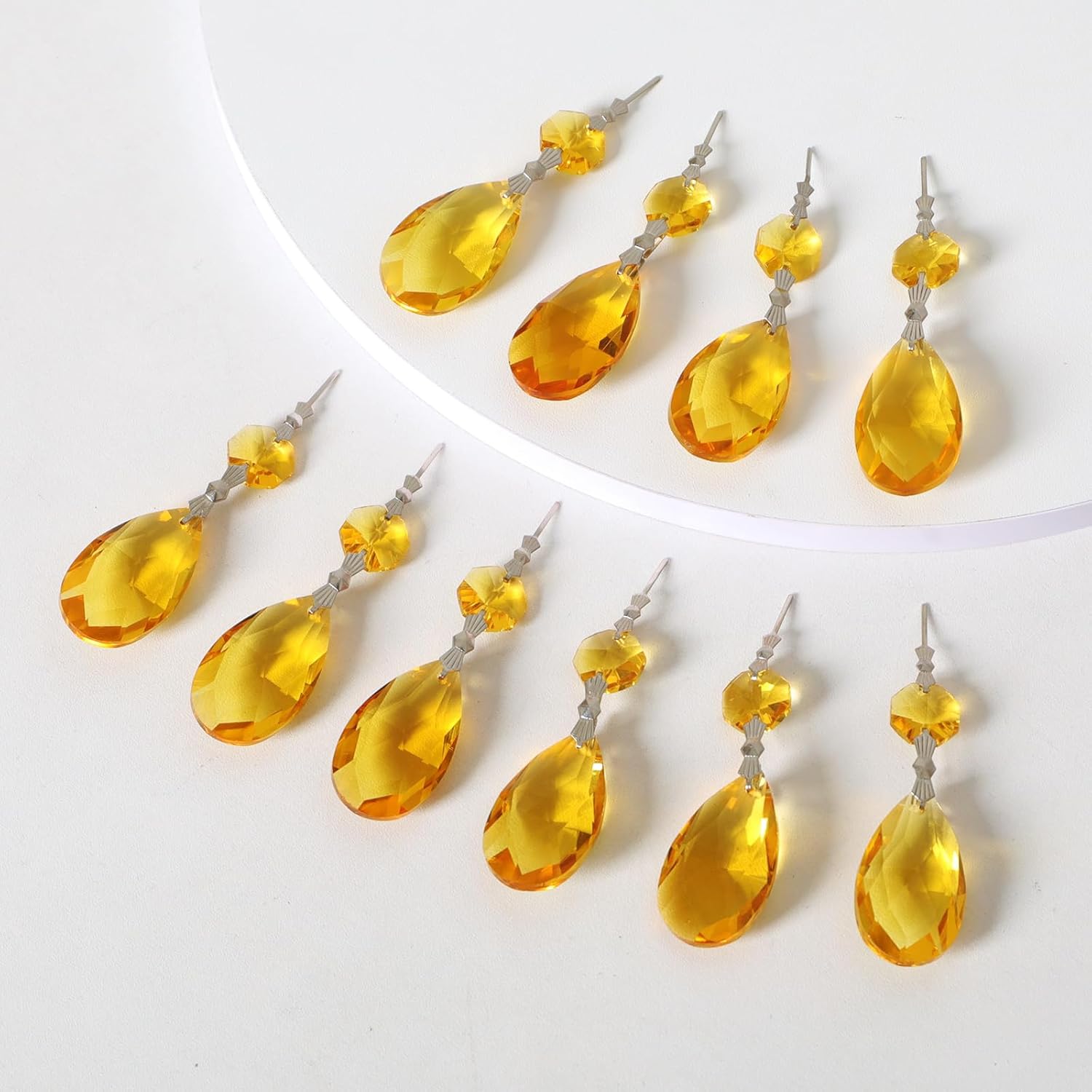 10pcs Crystal Prisms Chandelier Yellow Ornament Pendants Rainbow Maker 38mm Drop Prism Hanging Prisms for Wedding Party Chrismtmas Decoration DIY Jewelry