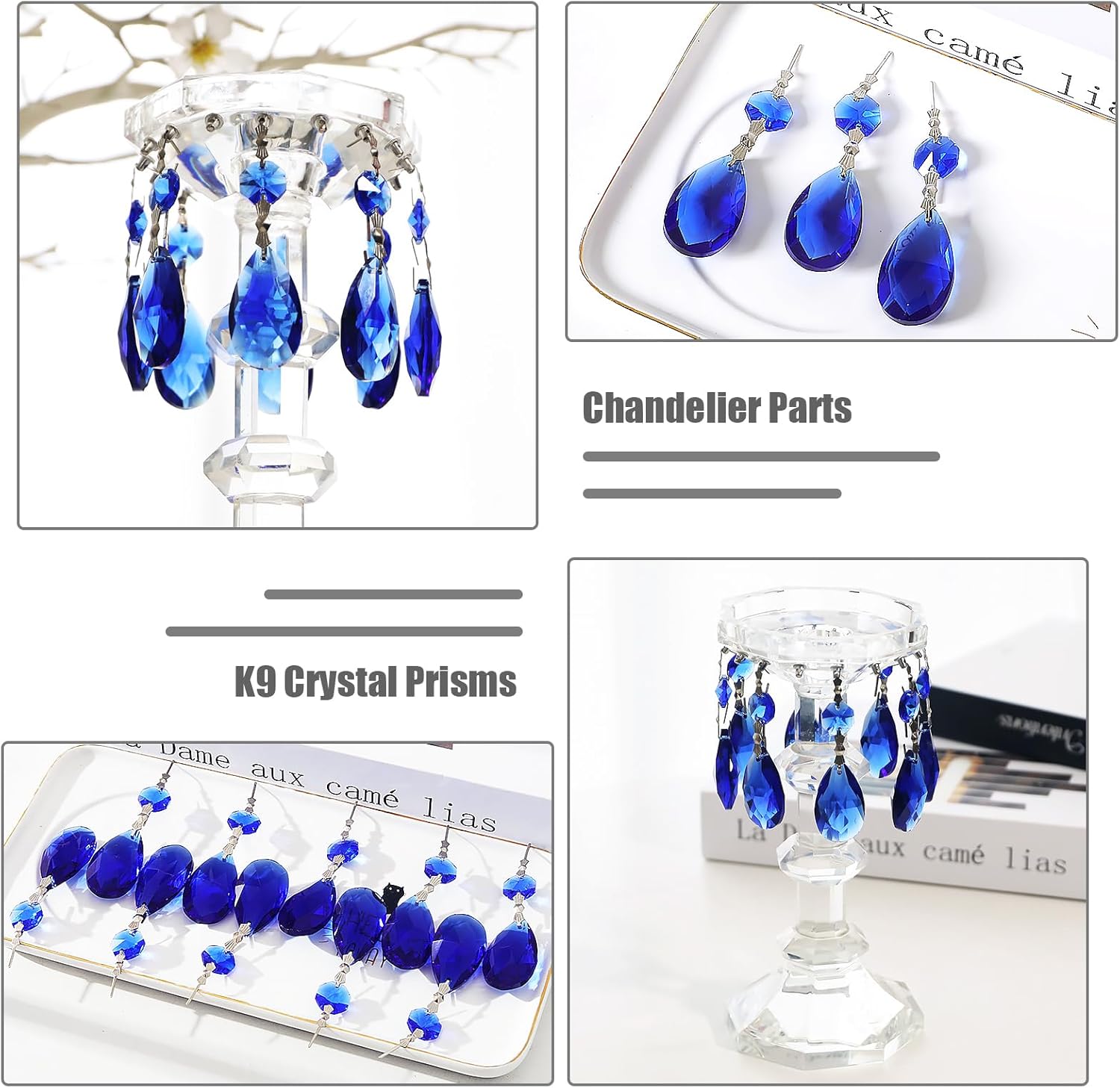 10pcs Crystal Prisms Chandelier Blue Ornament Pendants Rainbow Maker 38mm Drop Prism Hanging Prisms for Wedding Party Chrismtmas Decoration DIY Jewelry