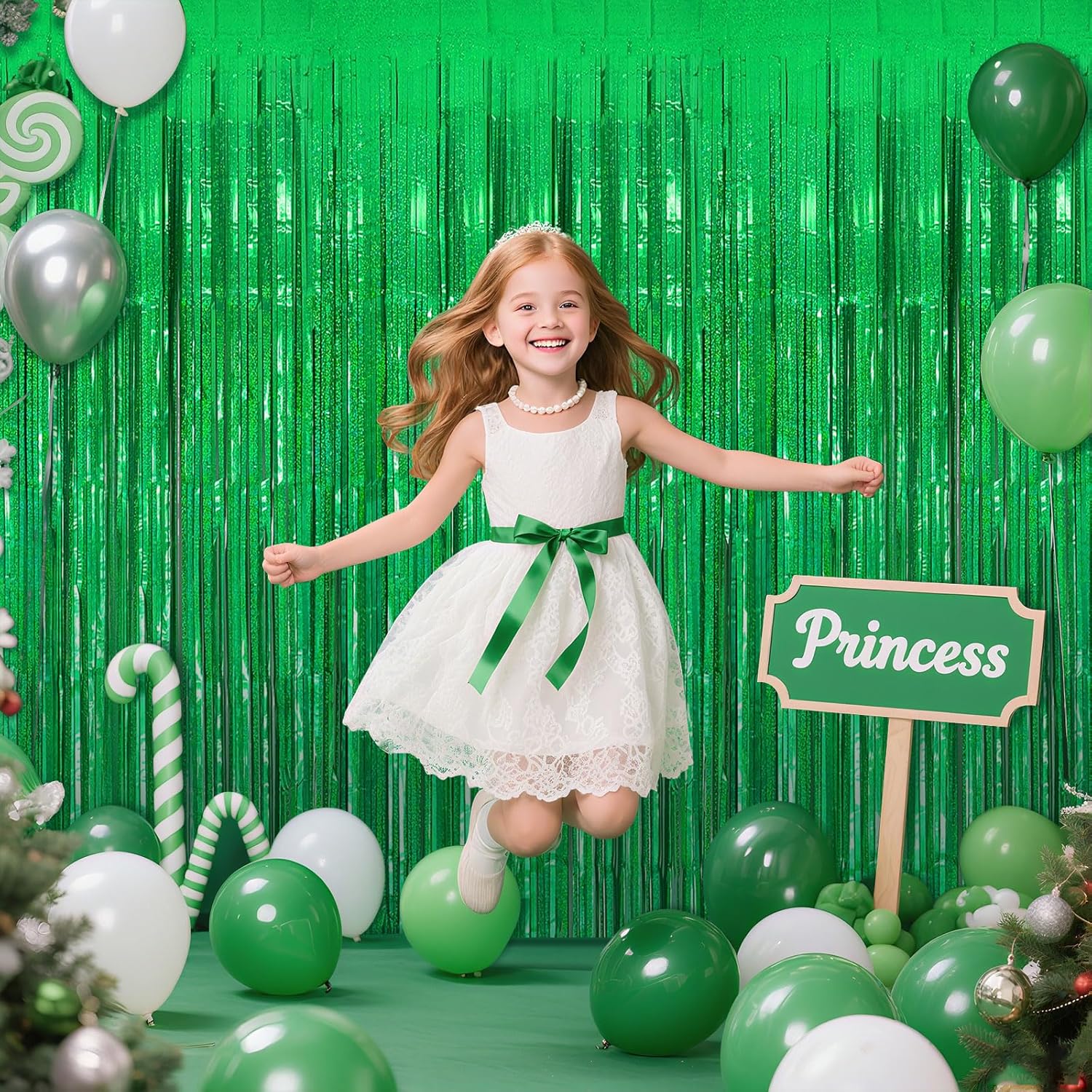 2 Pack Neon Green Birthday Decorations Foil Fringe Curtain Green Streamers for Glow Party Graduation Christmas St. Patrick's Day Streamers Decorations Bachelorette Party Accessories for Women