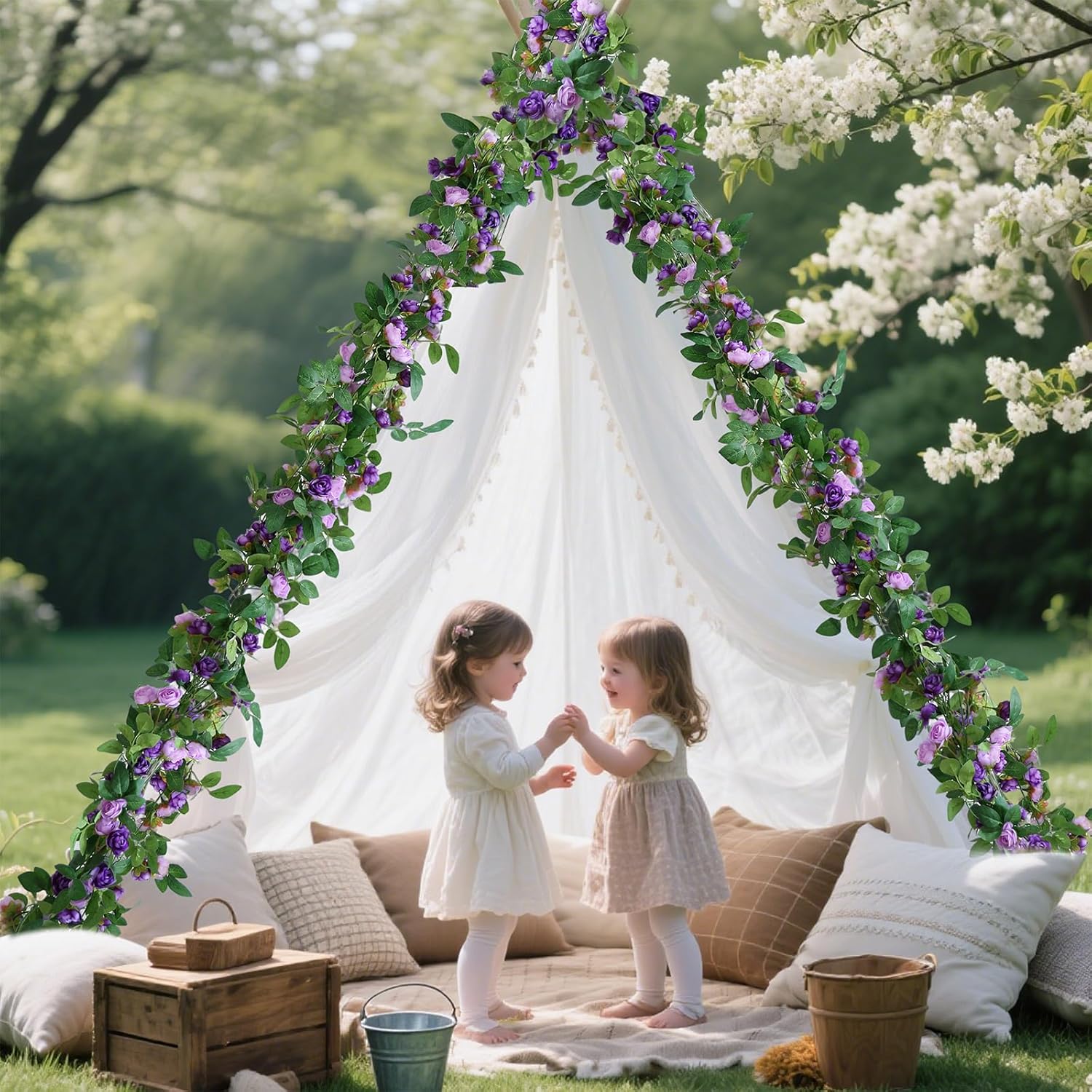 4 Packs Artificial Rose Garland: 31.48Ft Each Fake Flower Vine with Improved Color & 10 Ties for Wedding Arch Backdrop, Home Wall Party Decor, Christmas Decor, Purple