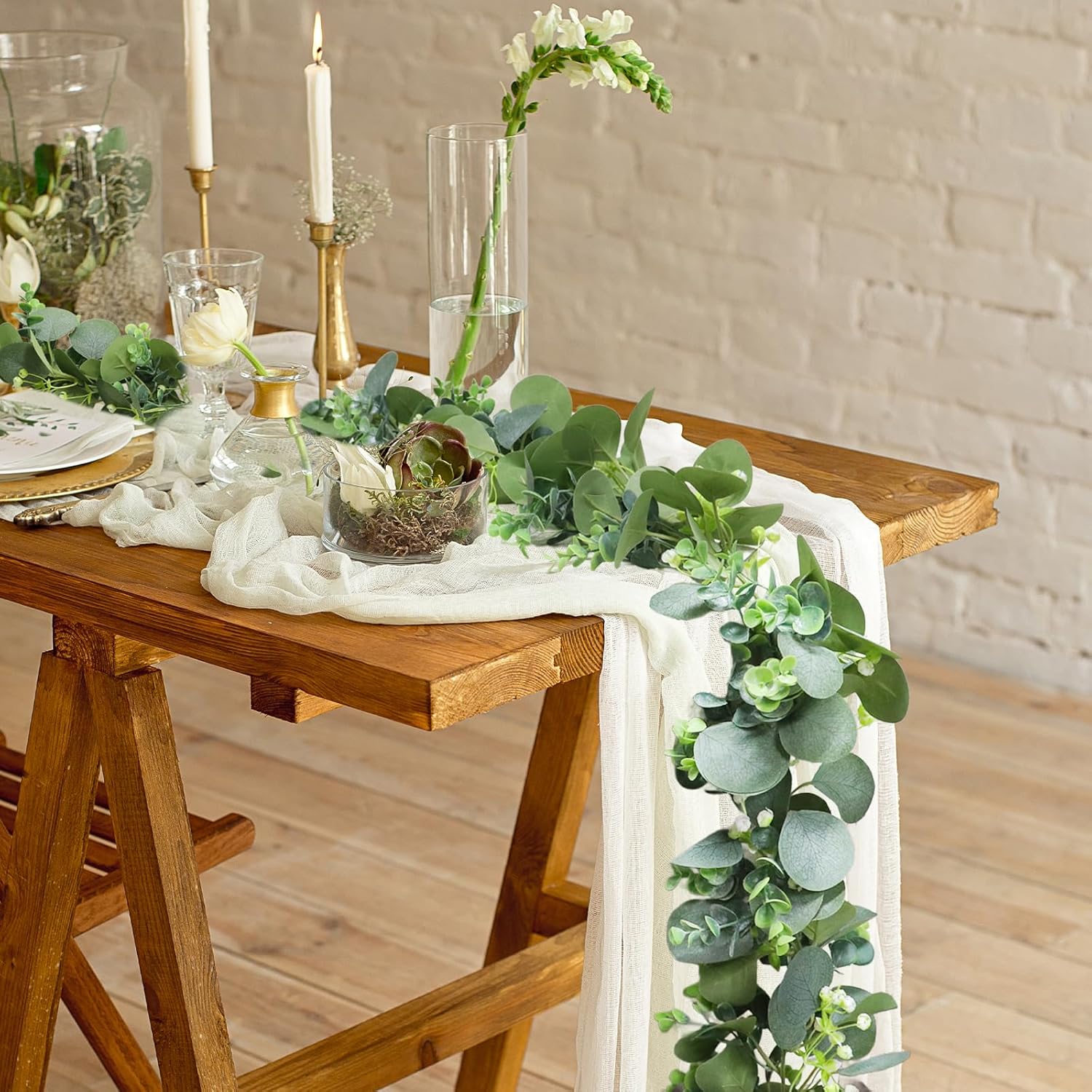 • 🌿🌿Multiple Application & Wide-fit Decor : Elegant mixed eucalyptus garland is the best choice for wedding arch, table centerpiece, wedding garland, backdrops decor, farmhouse garland, table runner, arches, hanging vine decorations, bench, Valentines Day, head table greenery, fireplace mantle garland, banquet tables, fence posts, home decor, party decor, handrail decor or other party decoration. You can also use it to DIY wreath, welcome sign, or decor fireplace, windowsill, adding a farmhouse and greenery boho style to your home.