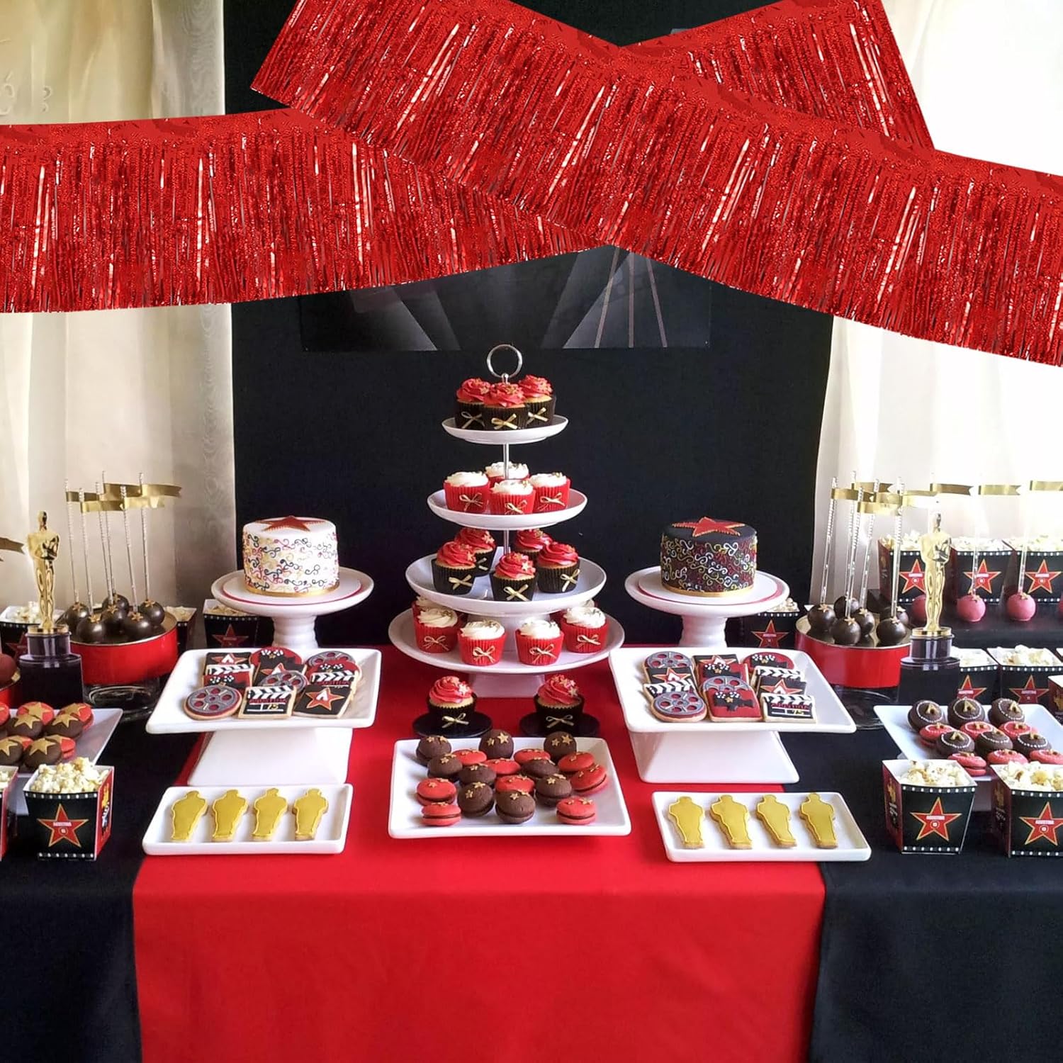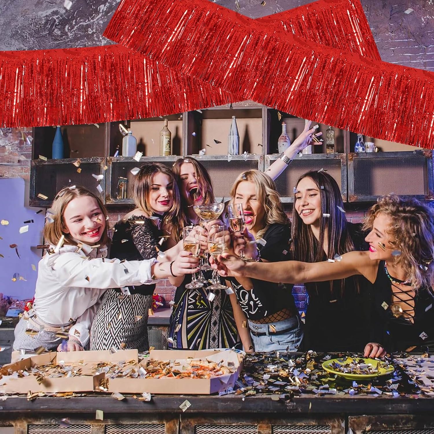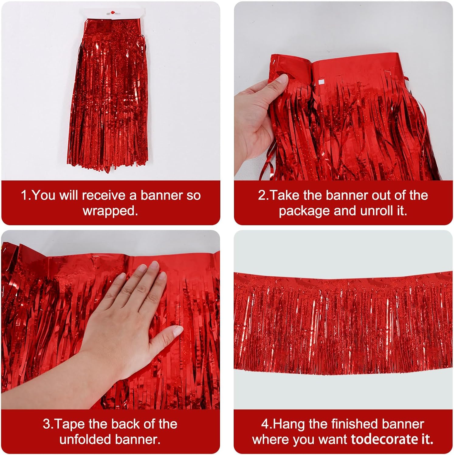 BEISHIDA 3 Packs Metallic Foil Fringe Garland Laser Red Wall Hanging Tinsel Fringe Banners for Car Floats Bridal Shower Wedding Birthday Easter Graduation Holiday Party Decoration(30 Feet)